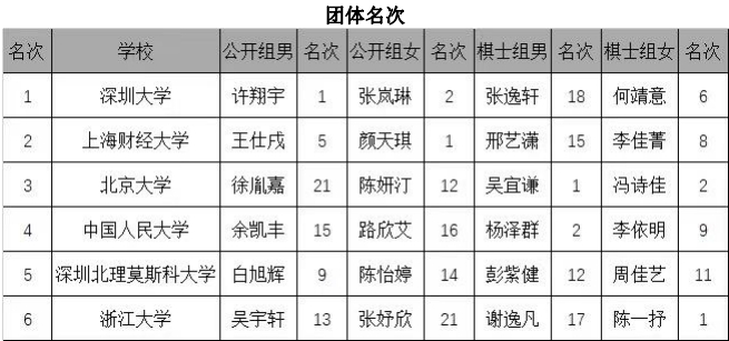 9月23日至25日,“萊西?體彩杯”2022年全國(guó)大學(xué)生國(guó)際象棋網(wǎng)絡(luò)錦標(biāo)賽在線上舉行。此次大賽由中國(guó)大學(xué)生體育協(xié)會(huì)、中國(guó)國(guó)際象棋協(xié)會(huì)、萊西市人民政府主辦,萊西市體育中心、青島市國(guó)際象棋協(xié)會(huì)承辦,來(lái)自北京大學(xué)、浙江大學(xué)、上海財(cái)經(jīng)大學(xué)、深圳大學(xué)等全國(guó)20余所高校百余名棋手同場(chǎng)競(jìng)技,一決高下。經(jīng)過(guò)多輪的激烈比拼,最終我校代表隊(duì)不負(fù)眾望,超越浙江大學(xué)、北京師范大學(xué)等諸多強(qiáng)隊(duì),斬獲團(tuán)隊(duì)第五名佳績(jī)。