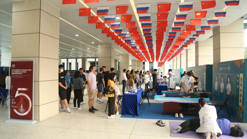 “針灸減肥靠譜嗎?”“哪些壞習(xí)慣可能毀掉眼睛?”“給毒蟲蛇咬傷要如何進(jìn)行應(yīng)急處理?”10月31日,由深圳北理莫斯科大學(xué)和深圳市中醫(yī)院共同主辦的“中醫(yī)藥文化進(jìn)校園,中醫(yī)藥健康沙龍活動(dòng)”在校園順利舉行?;顒?dòng)旨在推動(dòng)健康中國(guó)活動(dòng)、弘揚(yáng)中醫(yī)藥文化,向在校師生科普中醫(yī)基本理論常識(shí)與緊急情況下的應(yīng)急處理措施,參加的師生還能在現(xiàn)場(chǎng)體驗(yàn)竹藥罐、雷火灸、耳穴壓豆等中醫(yī)特色療法。