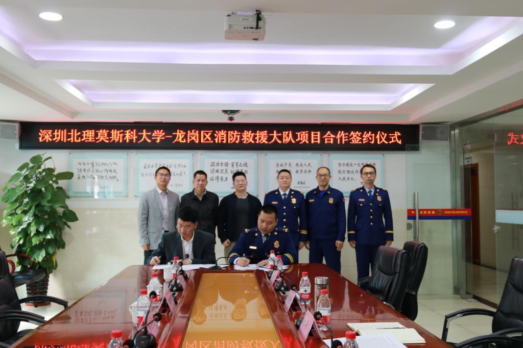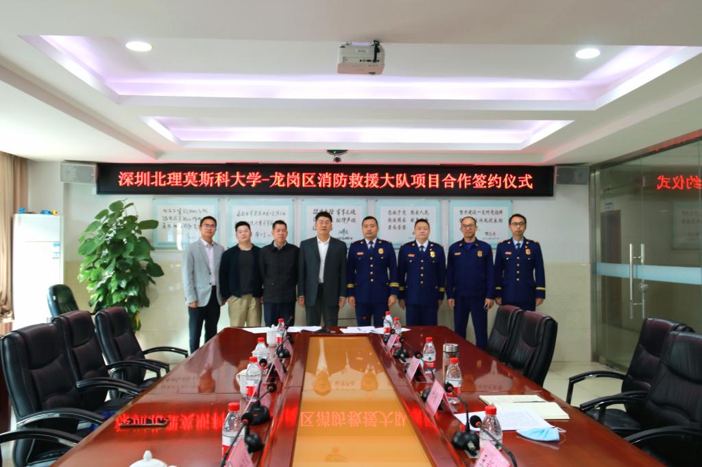 建設粵港澳大灣區和支持深圳建設中國特色社會主義先行示范區是習近平總書記親自謀劃、親自部署、親自推動的重大國家戰略,著眼的是國家改革開放大局、“一國兩制”偉大實踐和社會主義現代化強國建設全局。為響應深圳建設中國特色社會主義先行示范區和粵港澳大灣區建設兩大國家戰略需求,深圳市消防救援支隊與深圳北理莫斯科大學于2021年10月簽訂戰略框架合作協議,圍繞建設合作創新平臺、推動產學研成果轉化、促進人才隊伍建設等方面深化合作,并成立聯合工作站(科創實驗室)。聯合工作站(科創實驗室)辦公室分別設在深圳市龍崗區消防救援大隊和深圳北理莫斯科大學條件保障部,深圳市龍崗區消防救援大隊冉松松大隊長和深圳北理莫斯科大學條件保障部彭巨光部長牽頭組織雙方多名成員反復溝通、深入研究,于2022年1月26日簽訂第一個技術合作協議。