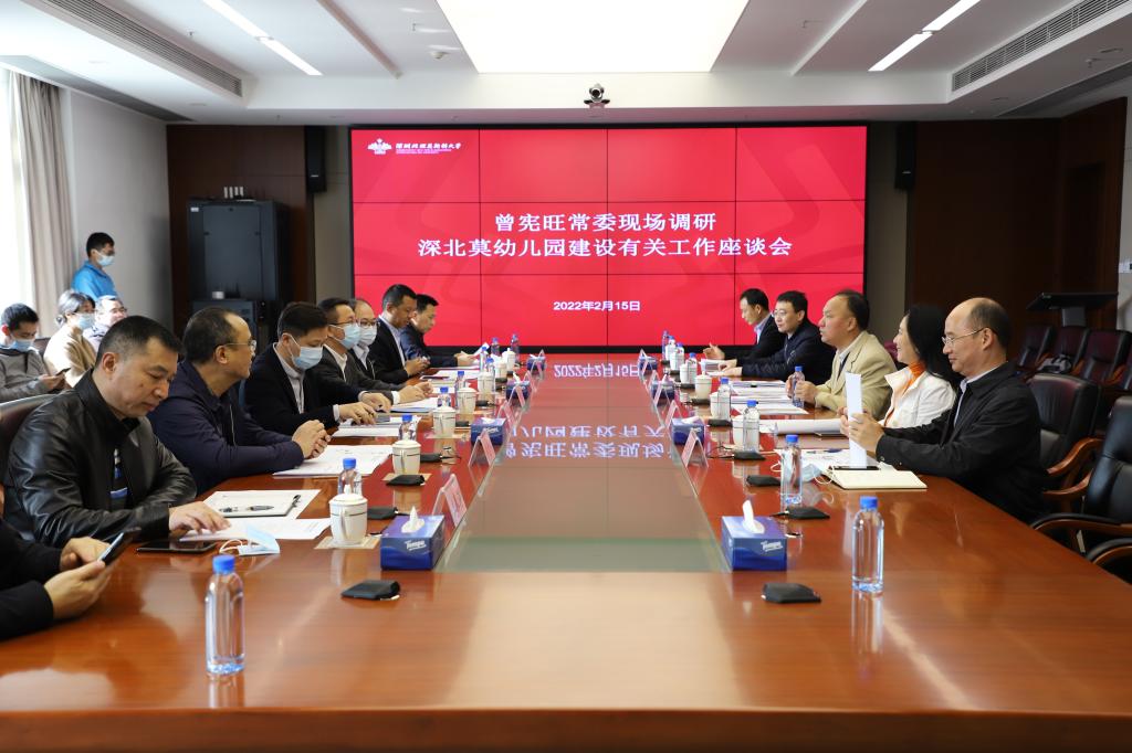 2月15日上午,龍崗區(qū)委常委、區(qū)委(府)辦主任、區(qū)委教育工委書記曾憲旺攜龍崗區(qū)發(fā)改局、教育局、住建局、工務(wù)署及龍城街道辦等一行來我校調(diào)研附屬幼兒園建設(shè)等有關(guān)工作。曾憲旺常委一行首先實地調(diào)研了附屬幼兒園擬建場地,并詳細詢問和了解立項建設(shè)情況和存在的困難。學校黨委書記朱迪儉現(xiàn)場代表學校教職工表達了對開辦幼兒園的強烈愿望和殷切期盼,并介紹了幼兒園建設(shè)需求等情況。在座談會上,曾憲旺常委聽取了區(qū)各相關(guān)職能部門的情況匯報,并就幼兒園建設(shè)工作提出具體要求。會議指出各部門要提高政治站位,大力支持深北莫附屬幼兒園建設(shè)和今后辦學。會議要求各部門倒排工期,高品質(zhì)打造精品工程,做到全市最好,全國一流,為中俄人文交流做出貢獻。朱迪儉書記代表全校教職工感謝龍崗區(qū)委、區(qū)政府多年來對學校工作的大力支持,并希望學校和龍崗區(qū)今后進一步加強合作。學校辦公室(董事會秘書處)、條件保障部及附屬幼兒園(籌)等相關(guān)負責人參加調(diào)研座談活動。