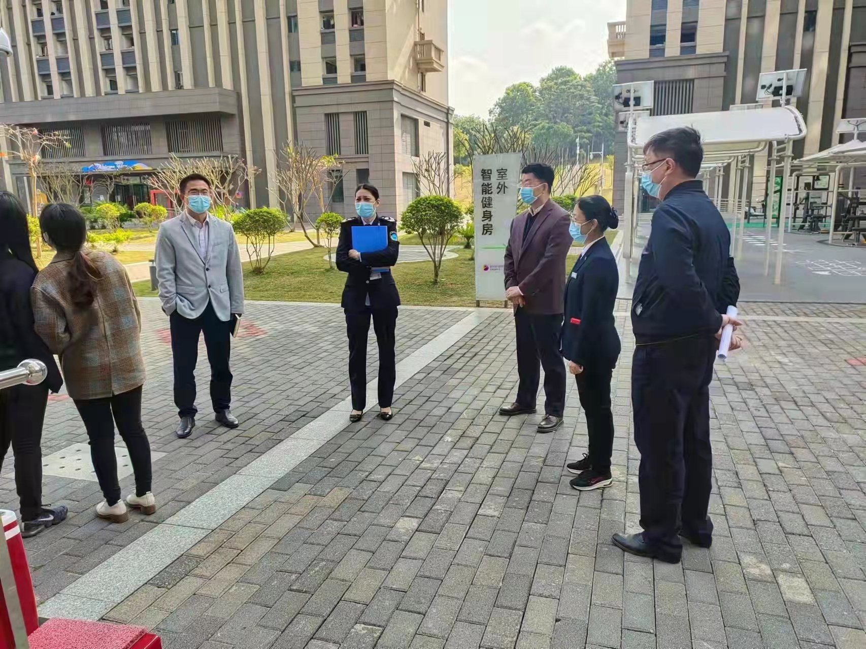 2022年2月16日上午龍崗區教育局、衛健、市監等部門組成的聯合檢查組對我校開展檢查,條件保障部彭巨光部長帶領歐陽征武、牛大鈞以及醫務室吳昊主任迎接檢查,檢查組工作人員重點檢查了食堂區域、健康觀察房、快遞收發區域等場所,檢查學校防疫工作臺賬、防疫演練及2022年春季返校防疫工作方案,對我校春季返校準備工作表示肯定,確認我校相關準備工作符合返校要求。