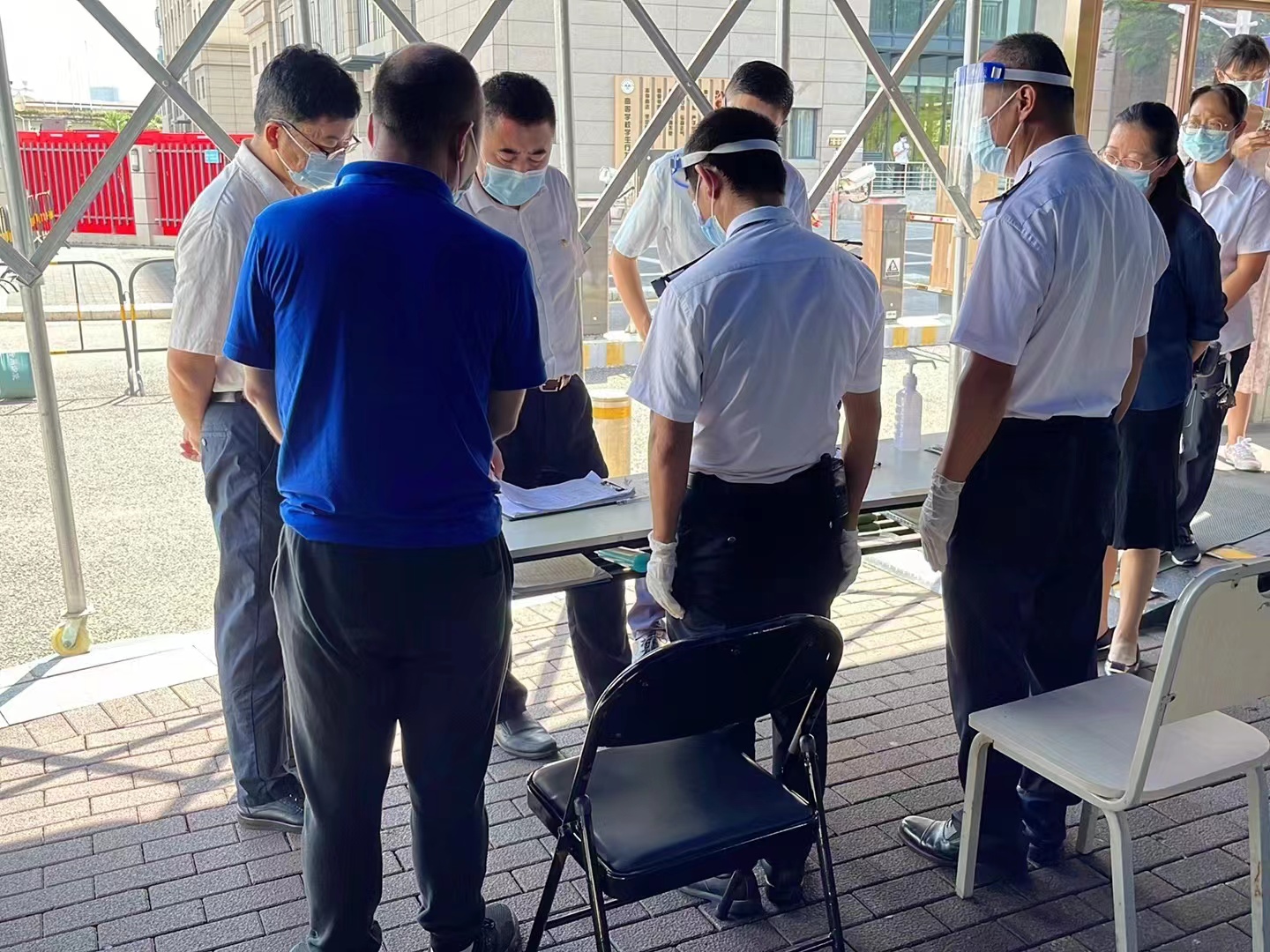 檢查組首先來到2號校門對門崗的防疫執行情況進行檢查,核實校內師生出入學校是否按照防疫要求進行登記、測溫和查碼。