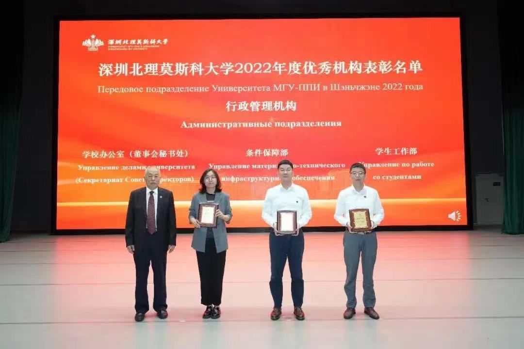 會上,第一副校長謝·尼·伊萬琴科宣讀2022年度優(yōu)秀機構表彰決定。條件保障部榮獲優(yōu)秀機構,校長李和章為優(yōu)秀機構頒獎。