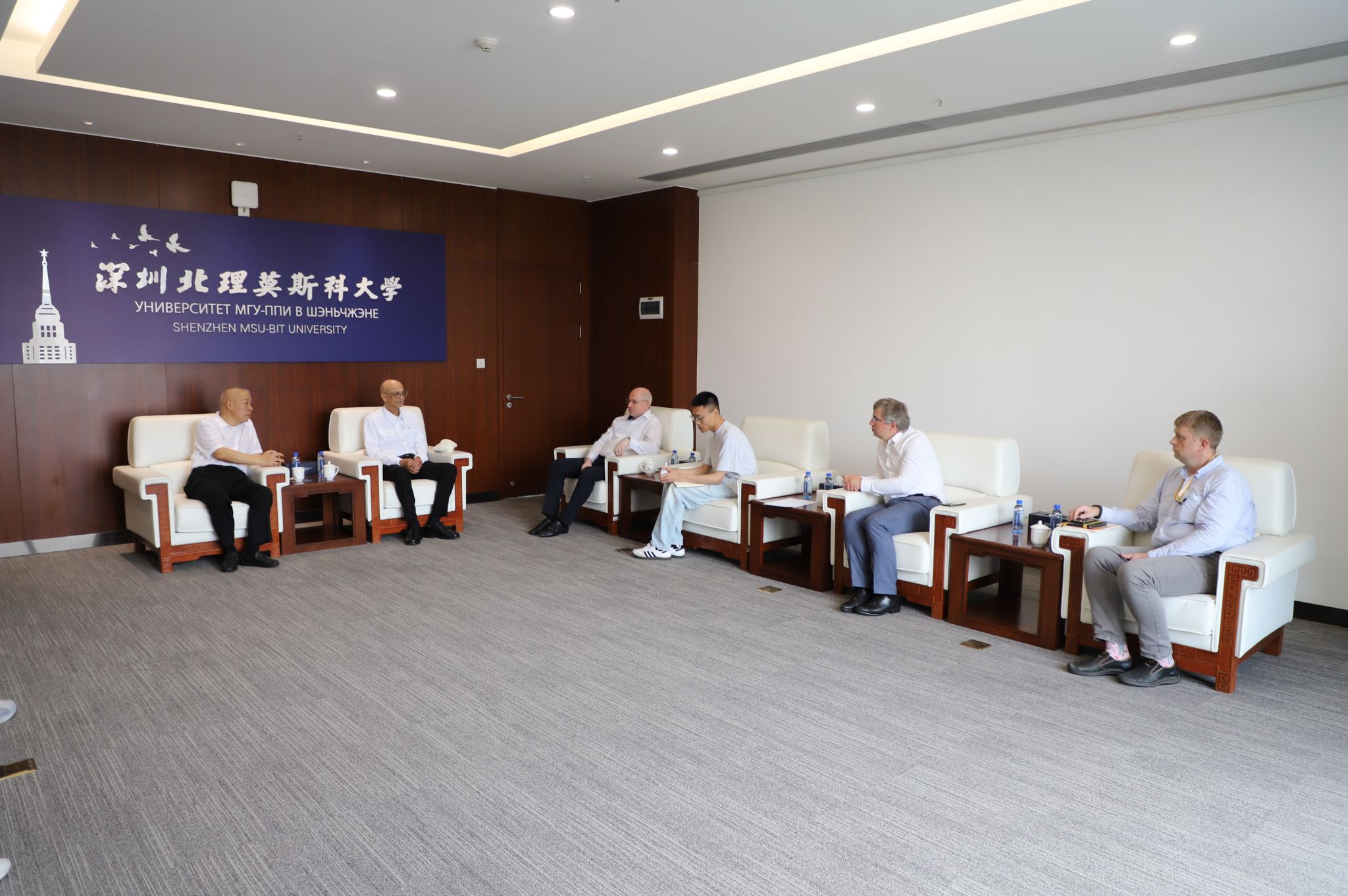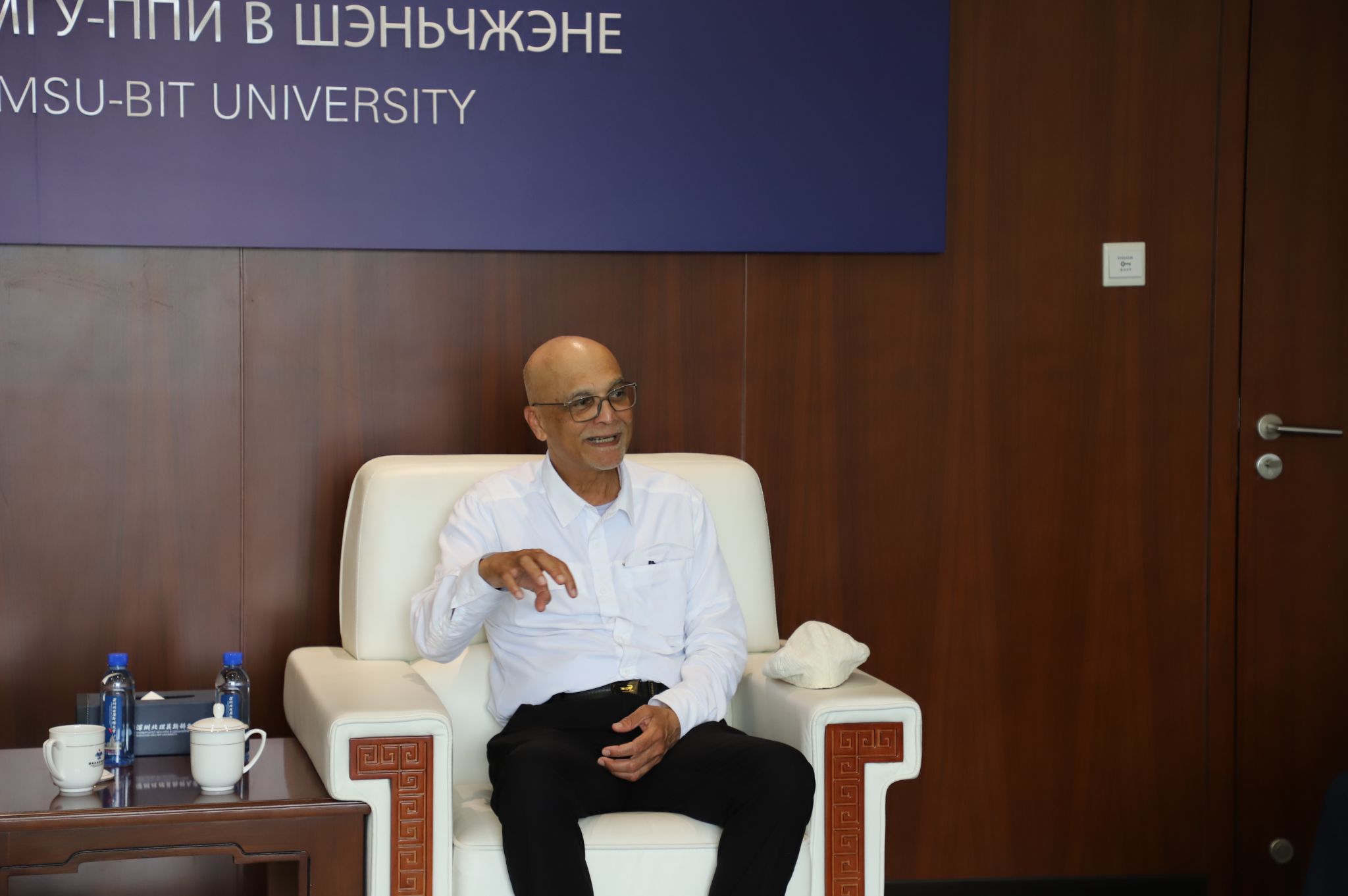 6月30日上午,中國科學院外籍院士,加拿大皇家學會院士,前加拿大皇家學會科學院院長,加拿大工程研究院院士,加拿大工程院院士,歐洲科學與藝術學院院士,默罕默德·賈馬·迪恩(Mohamed Jamal Deen)教授受邀到訪深圳北理莫斯科大學,學校校長李和章、第一副校長謝爾蓋·尼古拉耶維奇·伊萬琴科、學校科研事務部部長德米特里·謝爾蓋耶維奇·施塔廖夫、工程系副主任程杞元陪同,莫斯科國立大學副校長列昂尼德·弗拉基米羅維奇·古謝夫作為嘉賓一道參與座談交流。