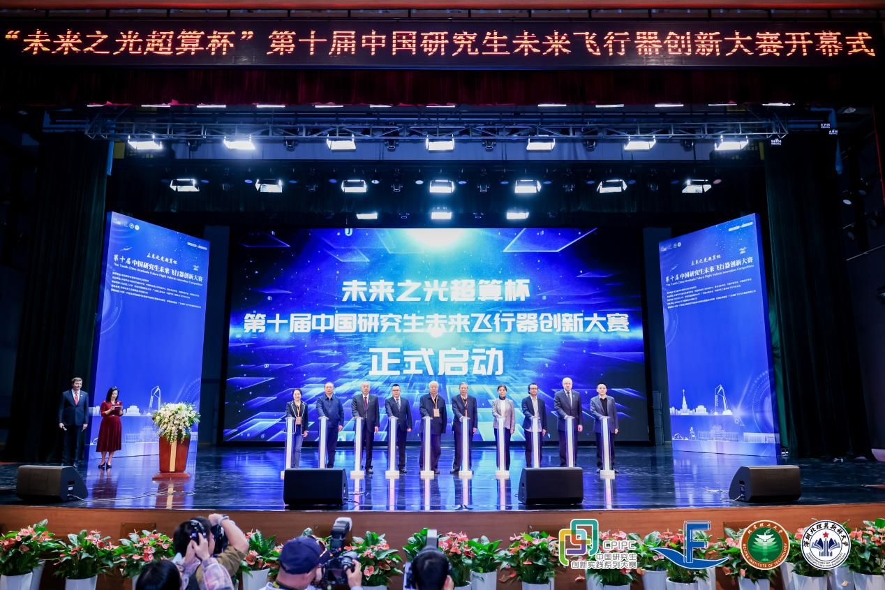 劉大響、楊鳳田、丁雪梅、廖永健、李樹國、李和章、伊萬琴科、陳超峰、鄧方、紀婉華等十位嘉賓上臺共同按下啟動鍵,宣布“未來之光超算杯”第十屆中國研究生未來飛行器創新大賽全國總決賽正式開幕。