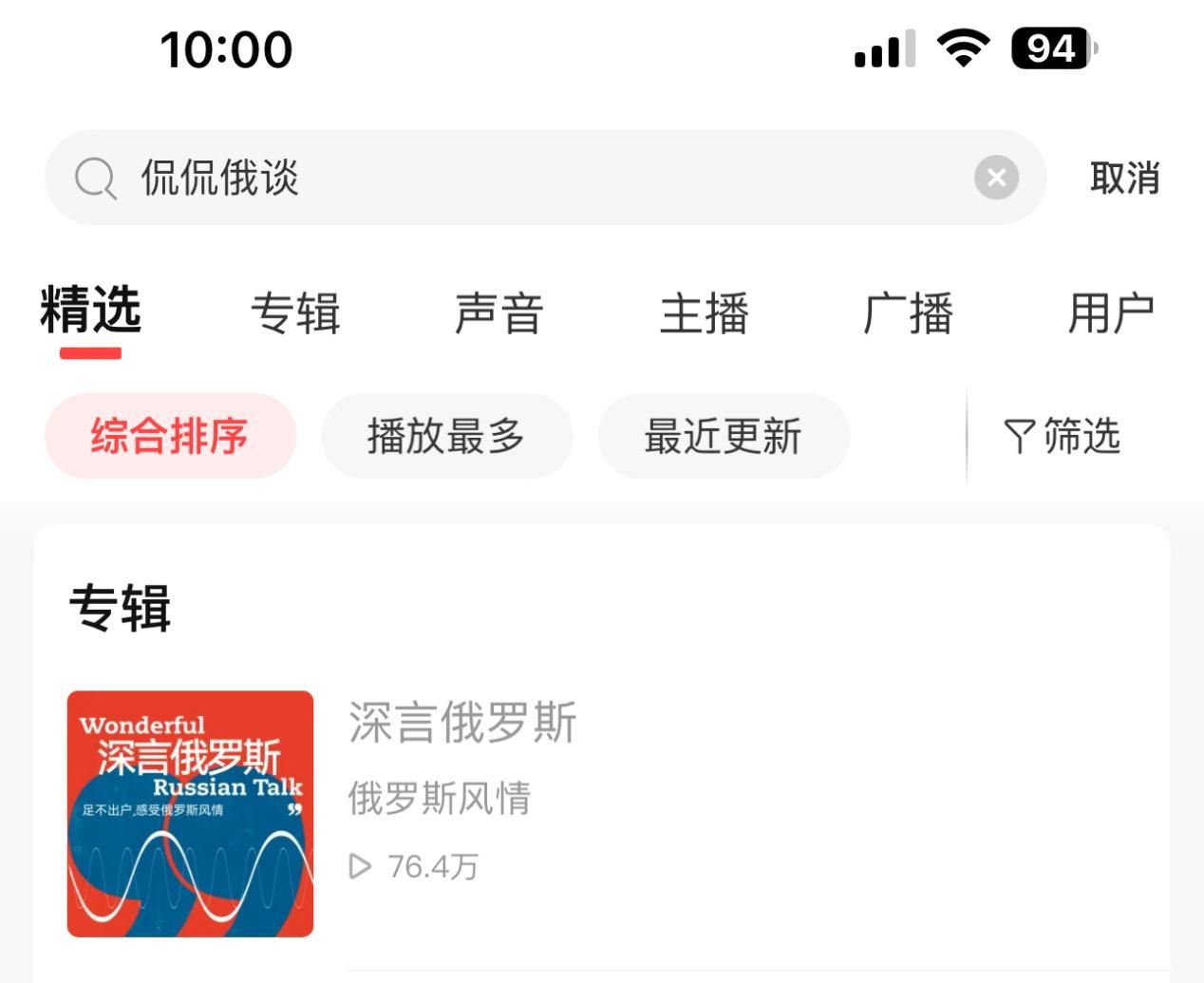 第四種:登陸喜馬拉雅APP,在搜索欄搜索“侃侃俄談”進行收聽。