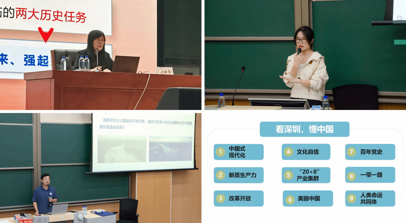 推動黨的創新理論的專家化解讀、青年化闡釋和三語式表達,是《看深圳·懂中國》特色思政課在“理論學習”環節的探索方向。《看深圳·懂中國》特色思政課在課程表達上,構建了一支由校團委、馬克思主義學院和學生工作部組成的課程團隊,推動多部門協同聯動、多類型人員共同備課,提升了理論學習的理論性、親和力。課程內容強調以深圳建設中國特色社會主義先行示范區為設計主線,設計由改革開放、文化自信和中國式現代化等組成的9大專題理論課,讓思政課理論學習更針對深圳的大學生,更符合中外合作辦學特色,豐富了中外合辦高校思政課教學素材庫。