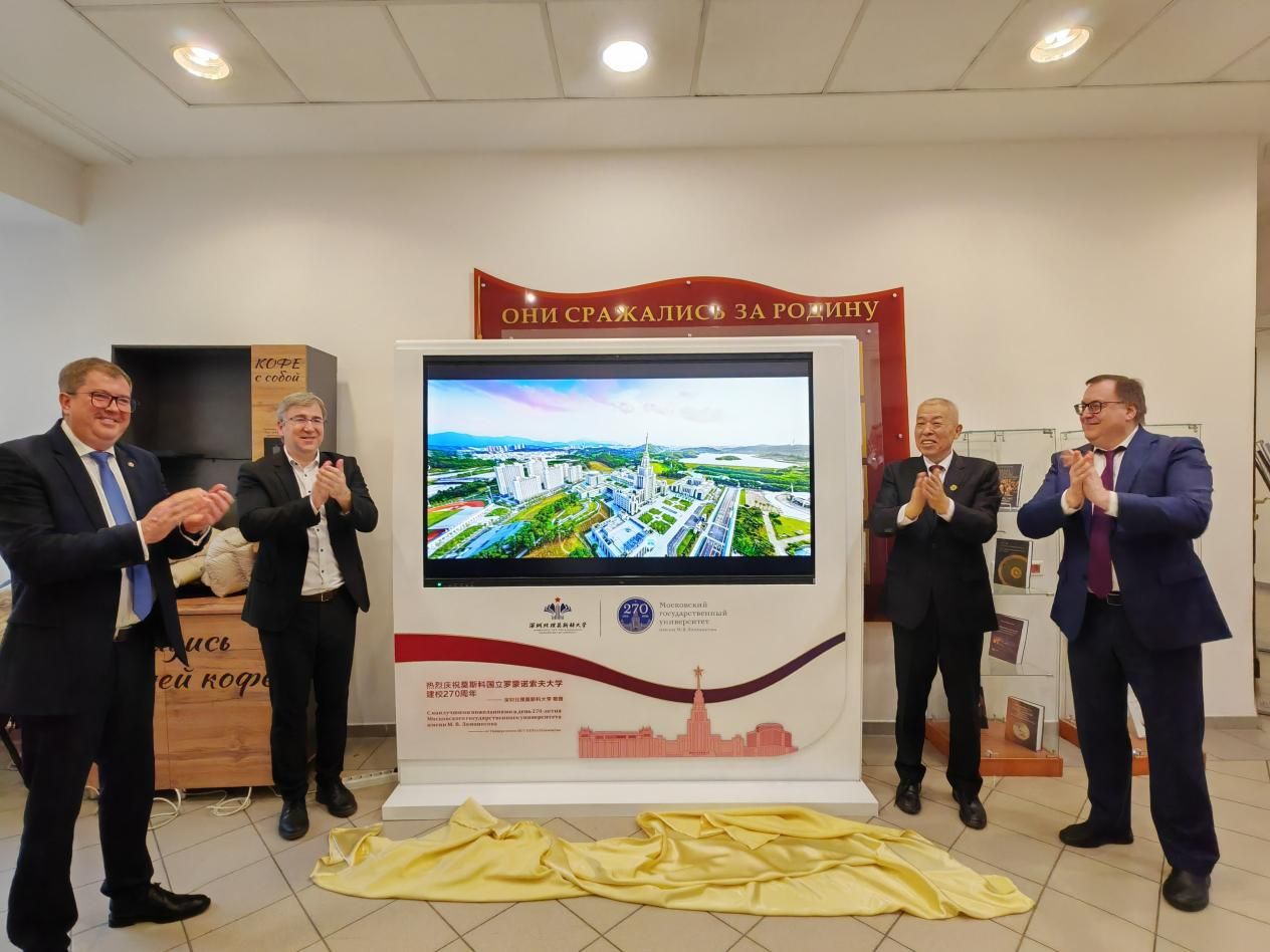 1月25日,適逢莫斯科大學270周年校慶。莫斯科大學始建于1755年,是俄羅斯歷史最悠久、規模最大的高等學府。在其270年的歷程中,不僅培養了大量杰出人才,還在科研、教育與創新方面取得了顯著成就。代表團應邀赴克里姆林宮參加慶典。李和章、謝·尼·伊萬琴科代表深圳北理莫斯科大學向莫斯科大學致賀信,并與俄羅斯科學院副院長斯·尼·卡爾梅科夫院士、莫斯科大學副校長列·弗·古謝夫,共同為“深北莫之窗”揭幕。該設備將常設在莫斯科大學校園內,能實現與深圳北理莫斯科大學實時聯網互動,讓更多俄羅斯學子了解深圳北理莫斯科大學。