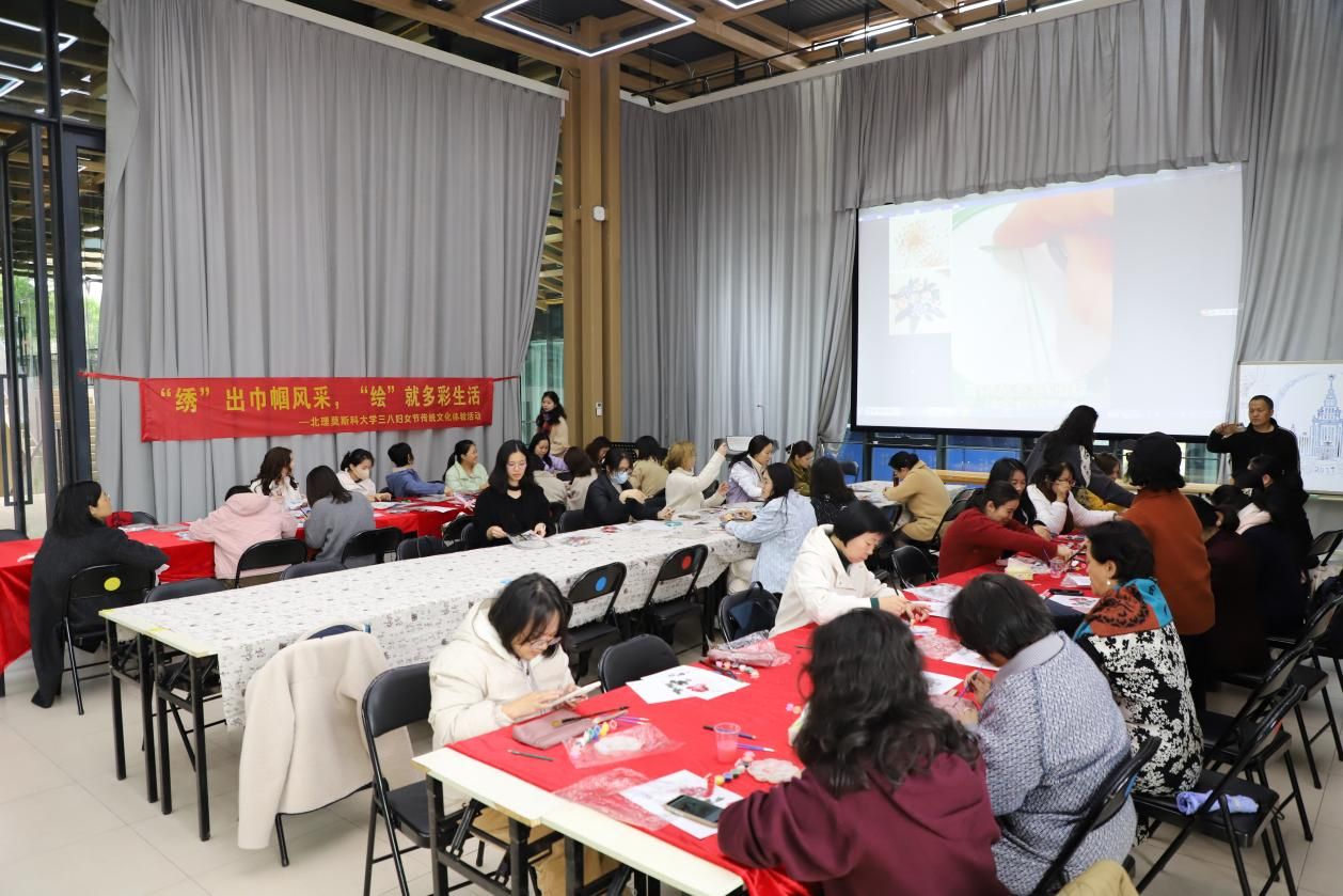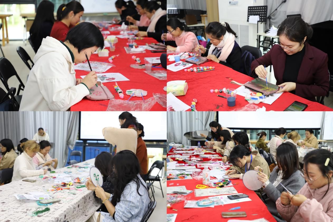 同日,絲綢手作活動在學生活動中心舉行。女教職工們齊聚一堂,沉浸于傳統手工藝的魅力之中。她們在絲綢手包上精心描繪圖案,在真絲團扇上一針一線地穿梭,繡出精美的花樣,以傳統手作傳遞節日祝福,用指尖藝術裝點春日時光。