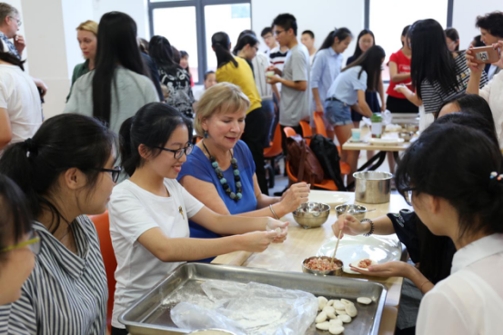 活動現場一派熱鬧景象,學生們好奇地圍在長桌邊,在俄羅斯和中國老師們的示范下,有的包俄式餃子,有的包中式餃子。大家熱火朝天地忙活著,不一會兒,一個個形狀各異的餃子紛紛出爐,引來一片片喝彩和掌聲。同學們一邊品嘗俄式餃子和中式餃子,一邊觀看了俄羅斯動畫片《你等著吧》,還演唱了俄羅斯經典歌曲《喀秋莎》。整個活動現場籠罩在歡樂祥和、其樂融融的氛圍中,就像一個和睦溫暖的大家庭。