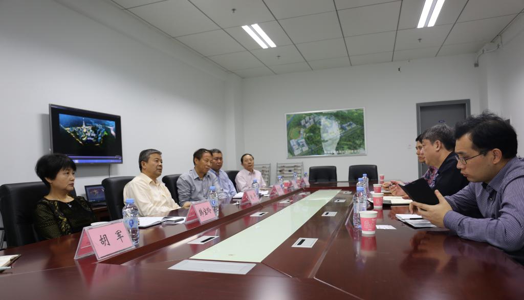 在過渡校區會議室,雙方進行了座談。張建中副校長主持座談會,趙平校長和有關部門負責人出席了會議。趙平校長對胡主任一行表示歡迎,并在會上介紹了我校發展歷史及學校辦學理念和特色。雙方就中外合作辦學及異地辦學所涉及的學科布局、師資配置、財務支撐等話題展開討論和交流。