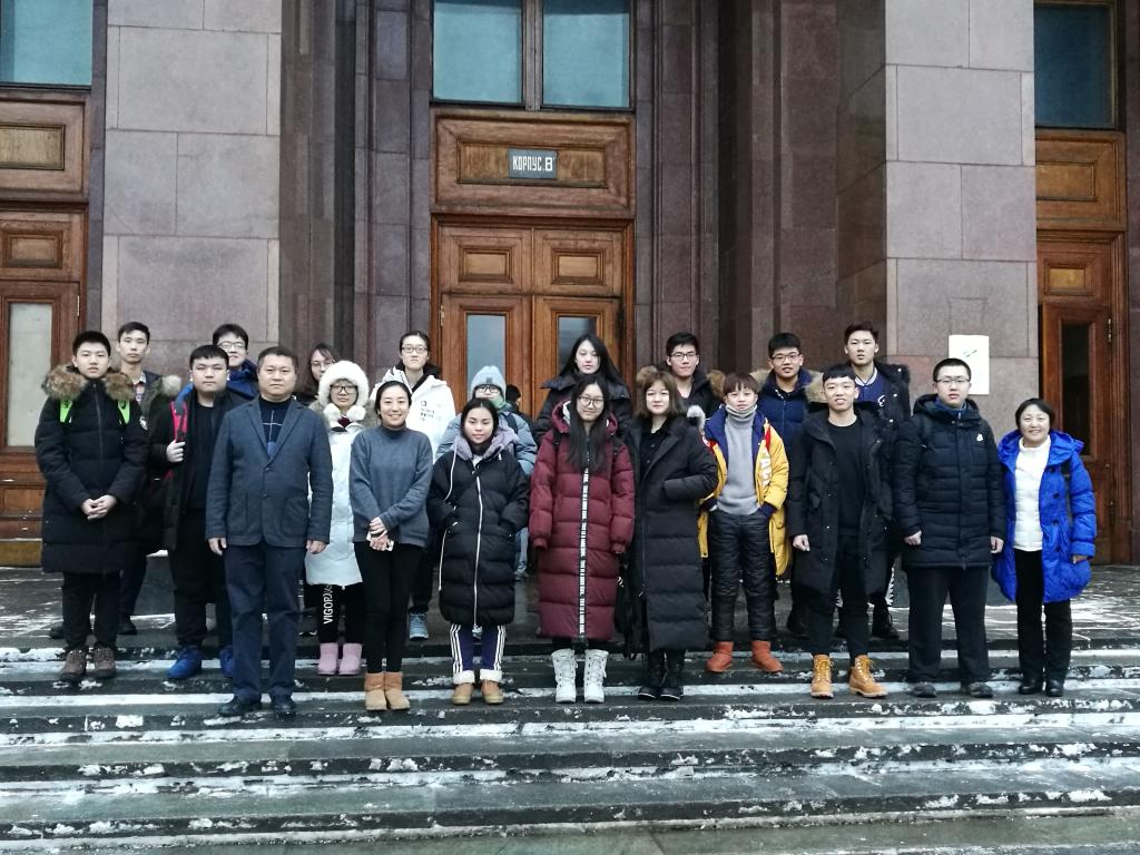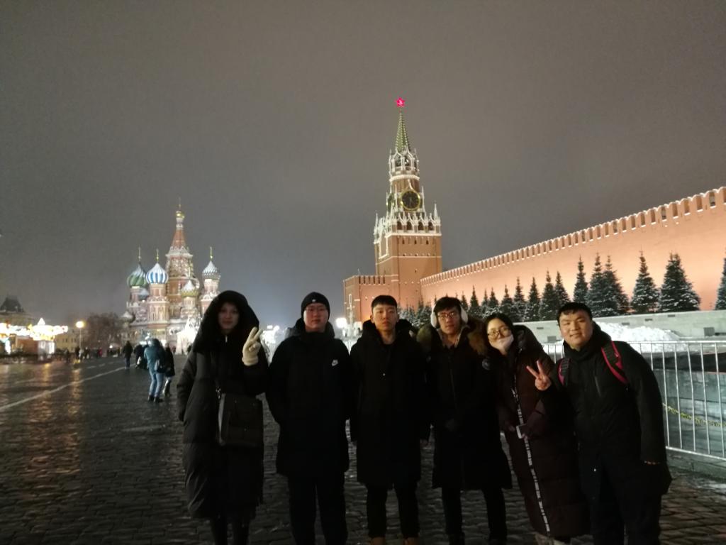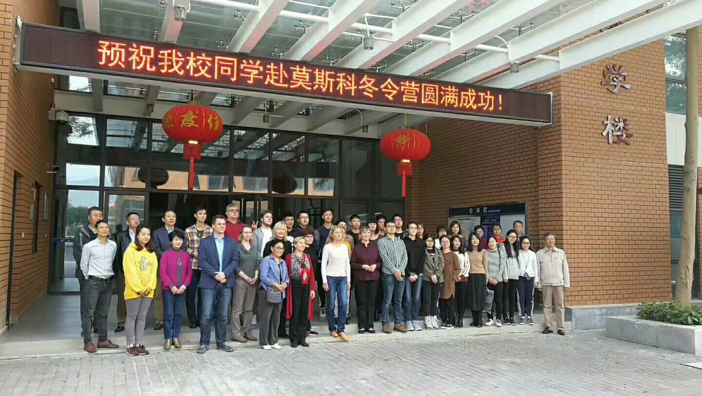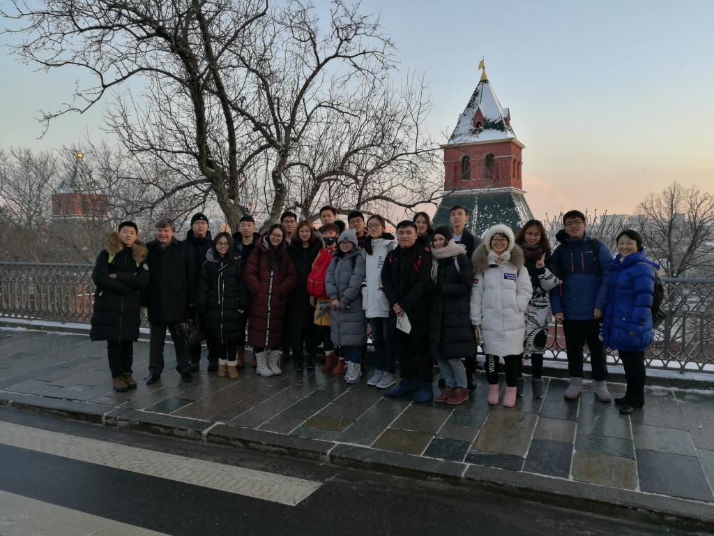 正在莫斯科公務的我校老師代表趙平校長看望同學們