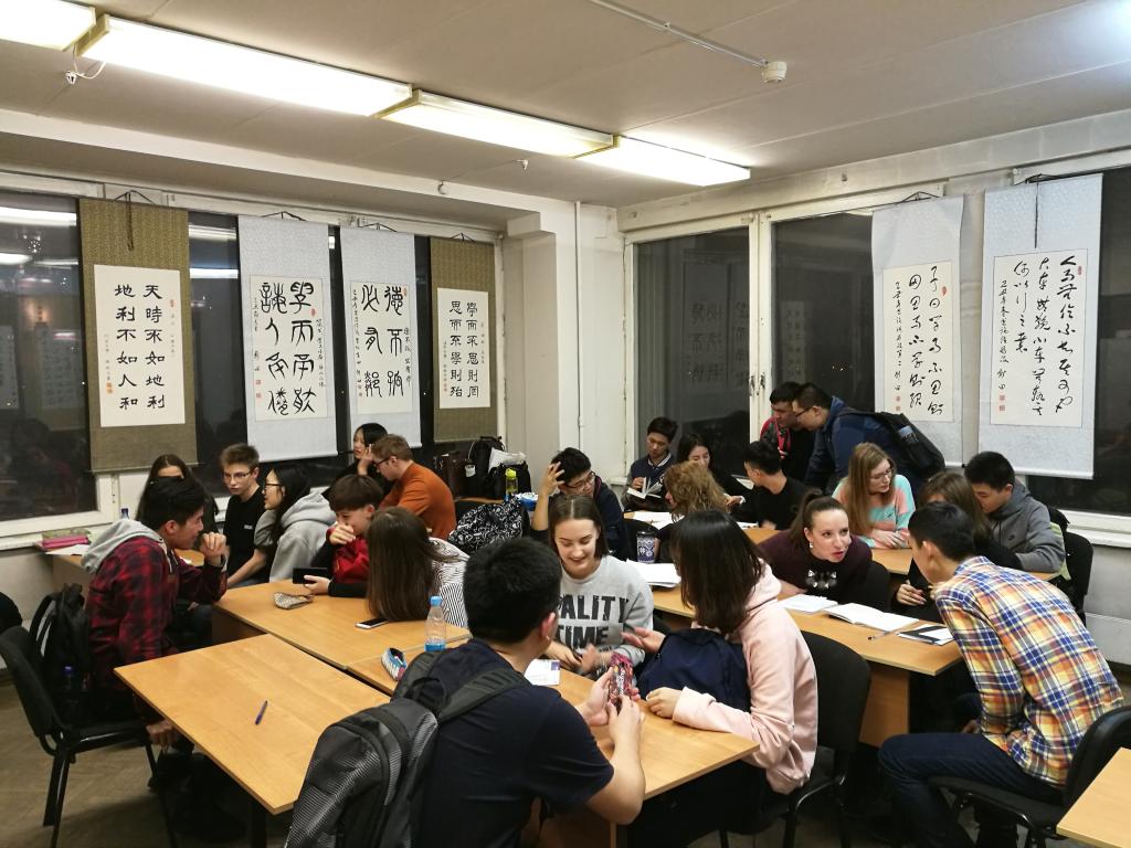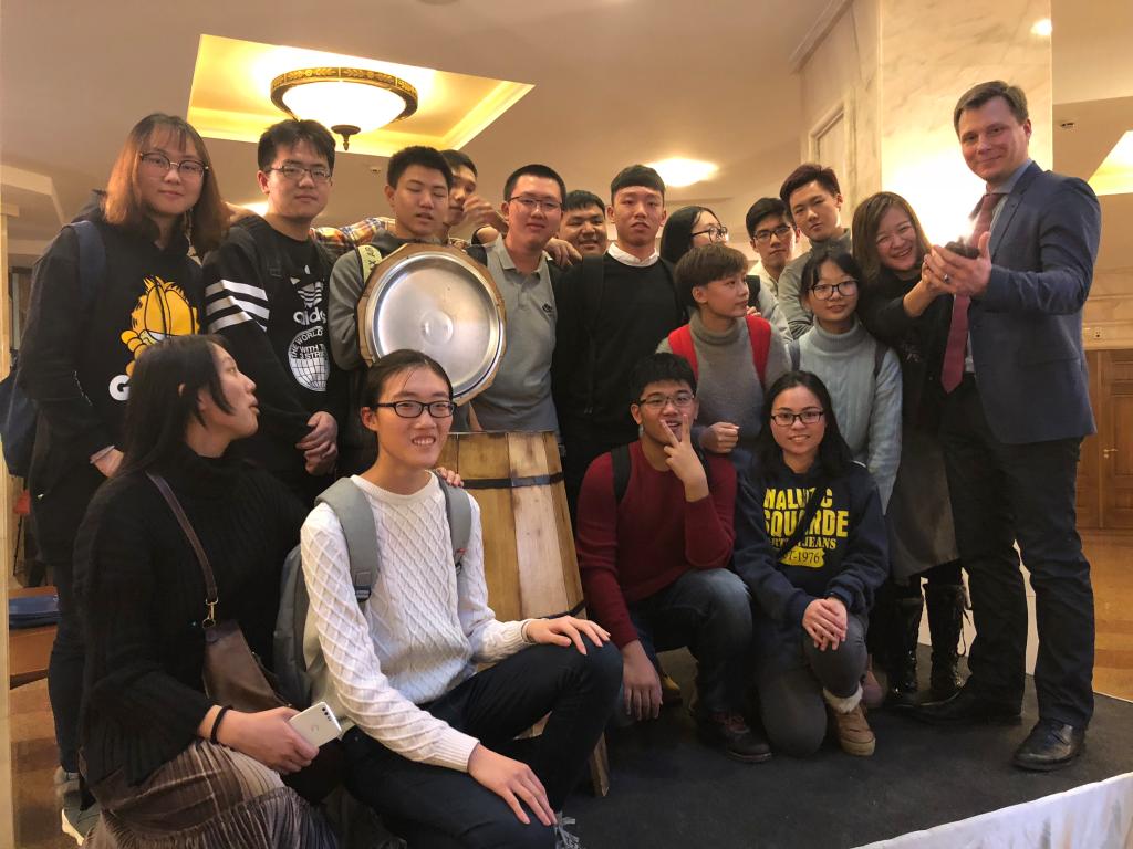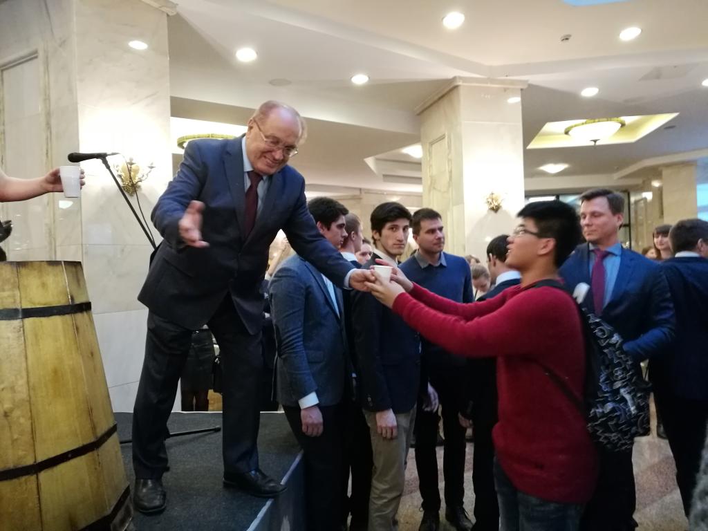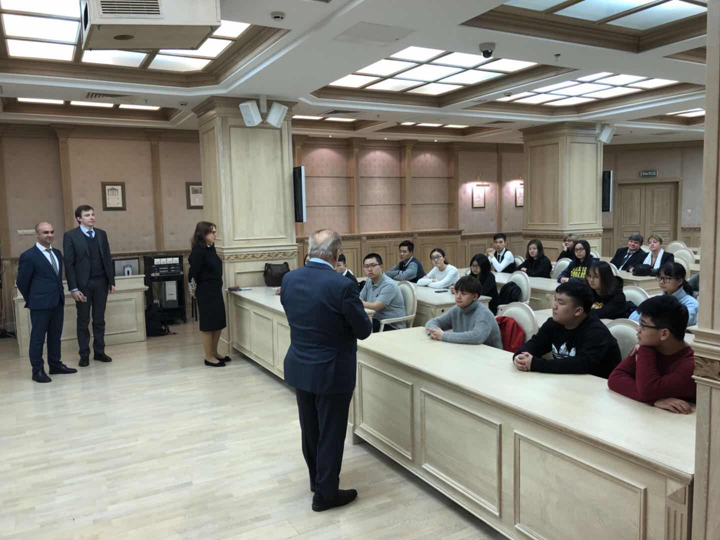 正在莫斯科公務的我校老師代表趙平校長看望同學們