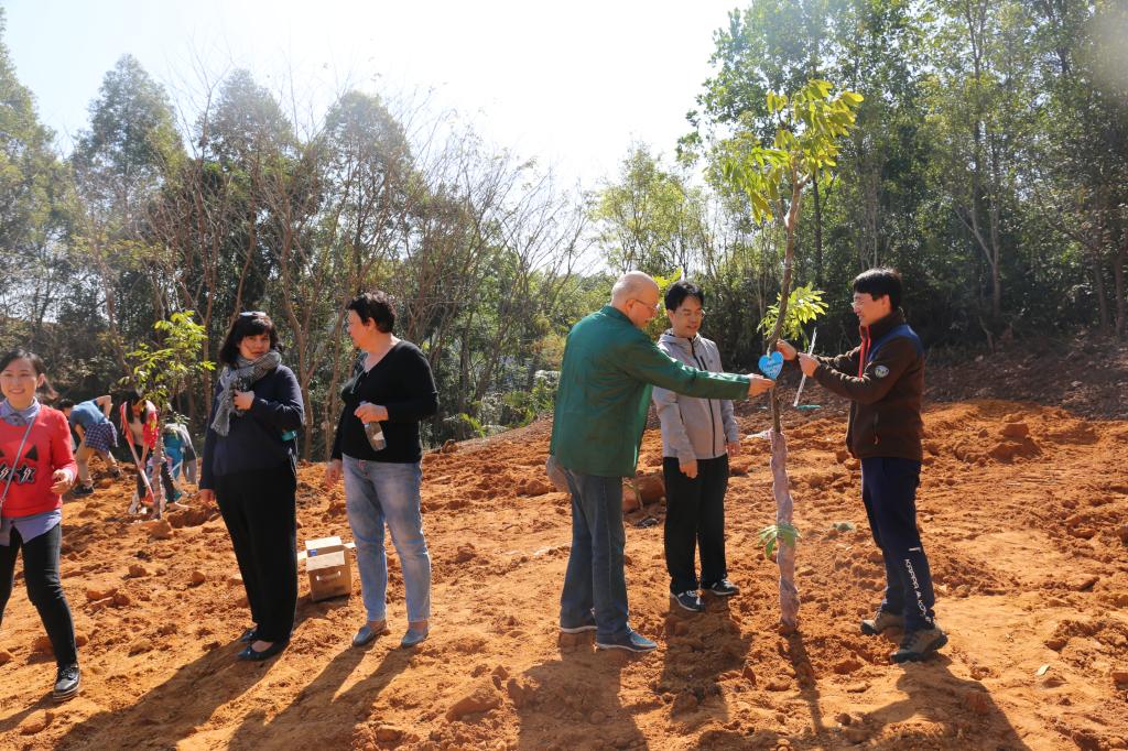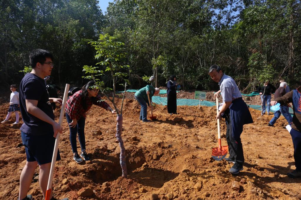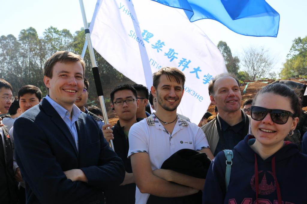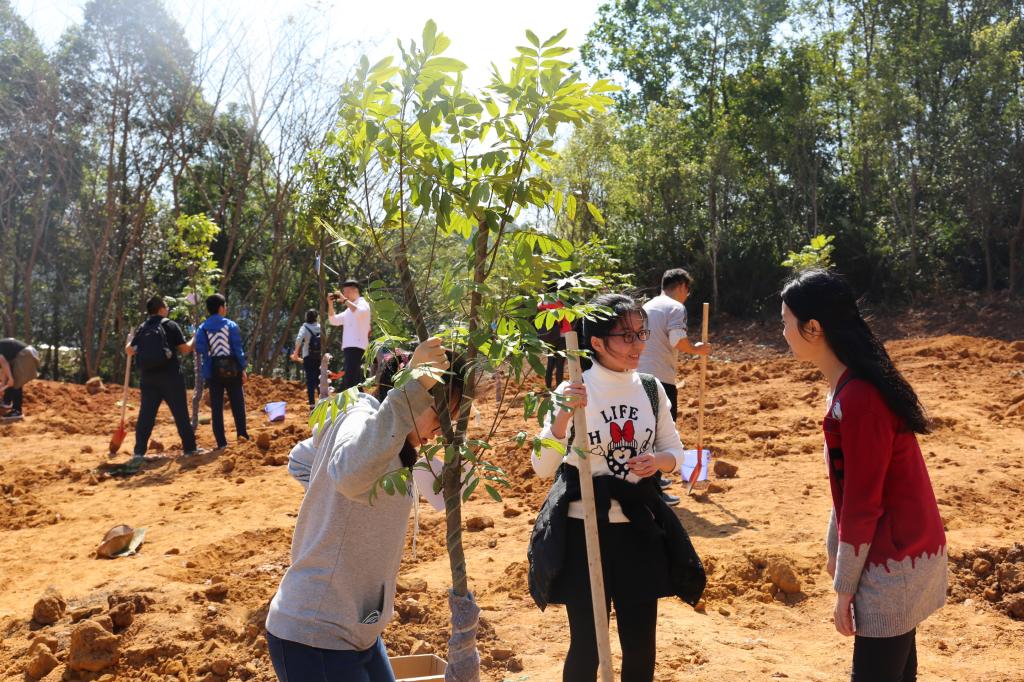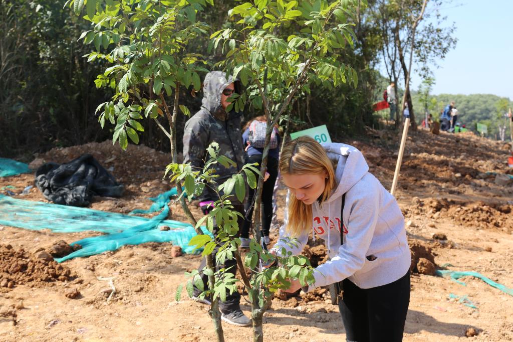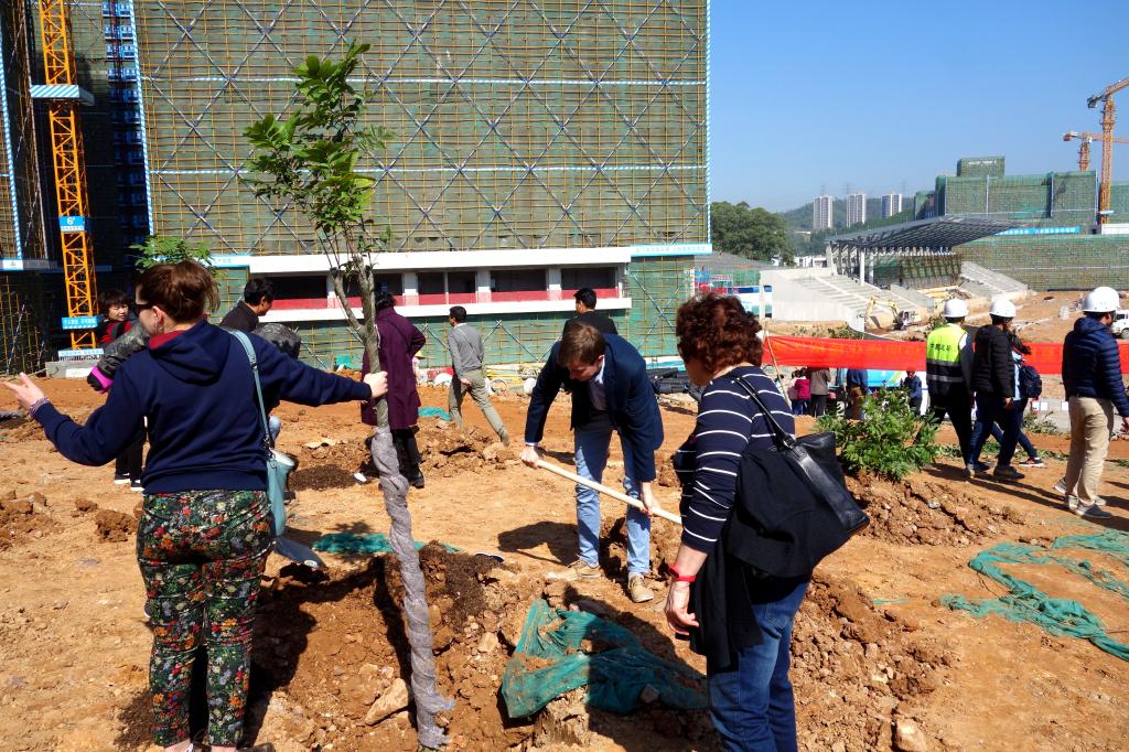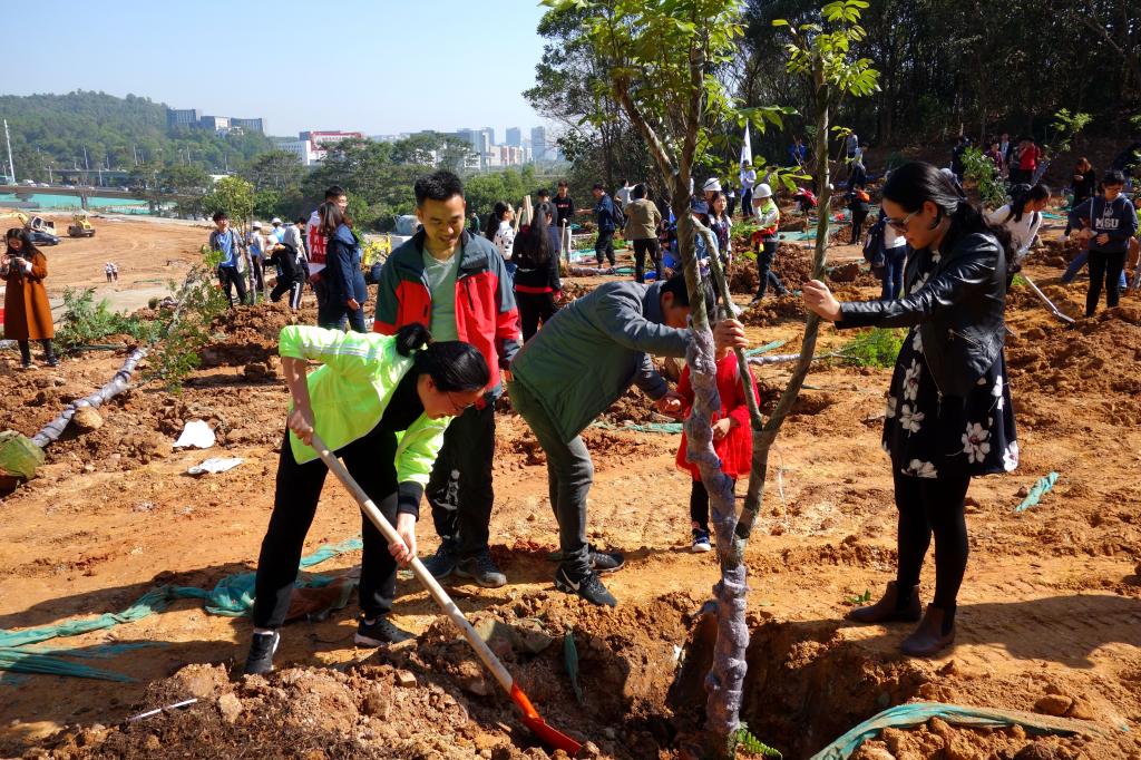 參加今天植樹活動的有深圳北理莫斯科大學、深圳市建設工務署工程管理中心、深圳北理莫斯科大學項目各參建單位、深圳北理莫斯科大學項目聯合黨支部共計200余人,其中俄羅斯老師和學生有20余人。在永久校區學生公寓樓旁的山坡上,大家種下了龍眼、荔枝、黃花風鈴木、紅花羊蹄甲等300株苗木。