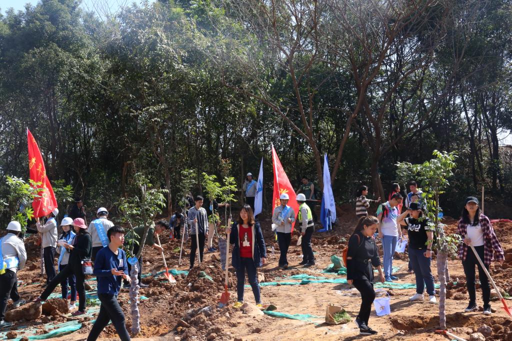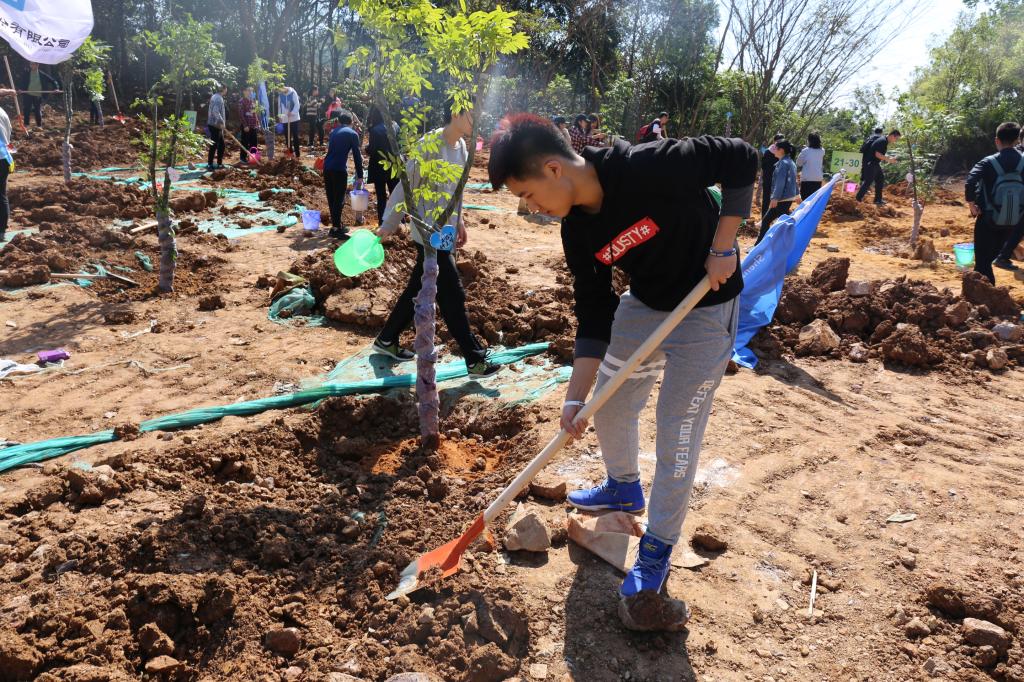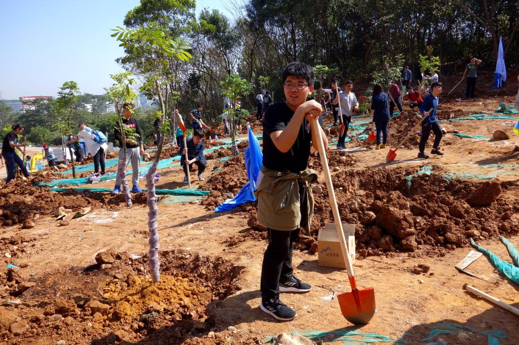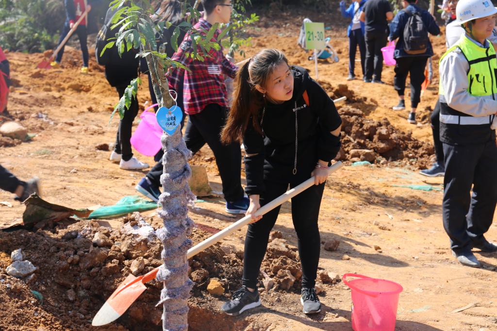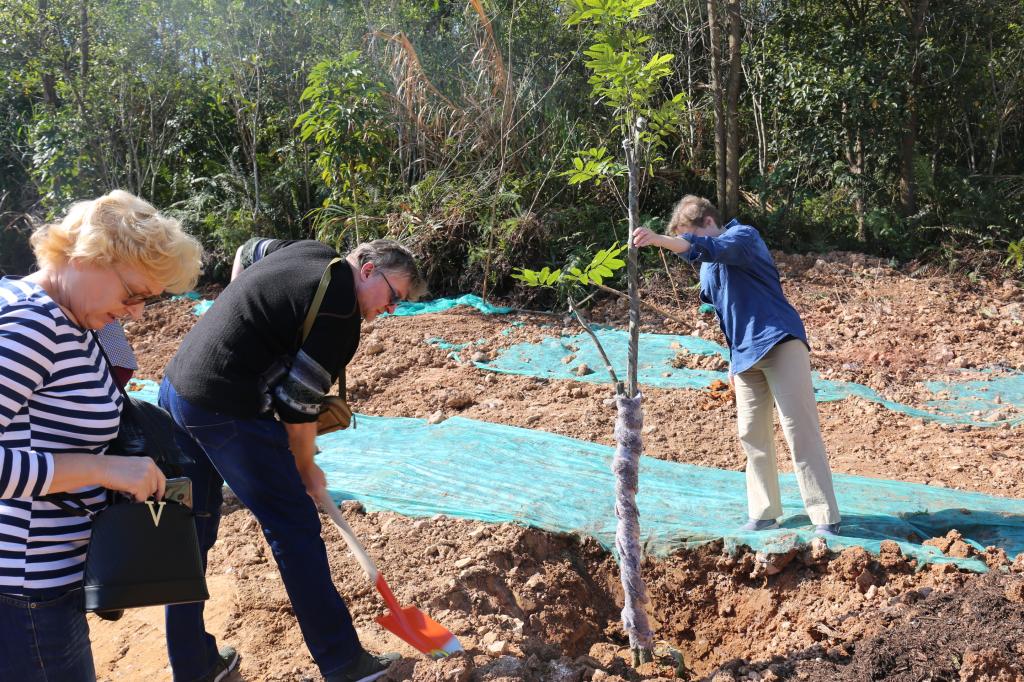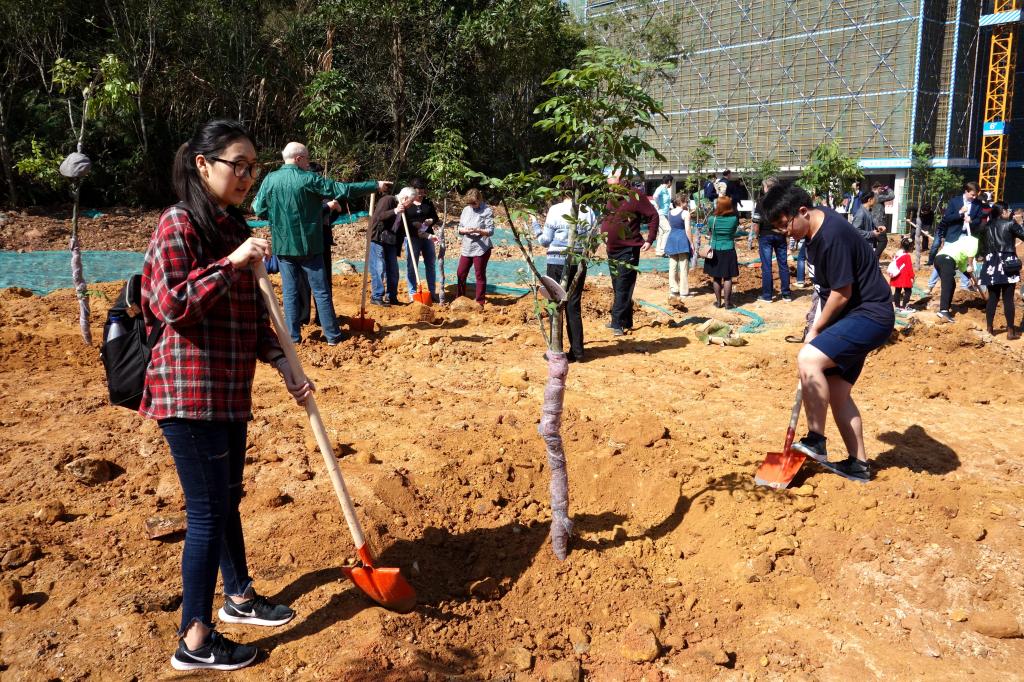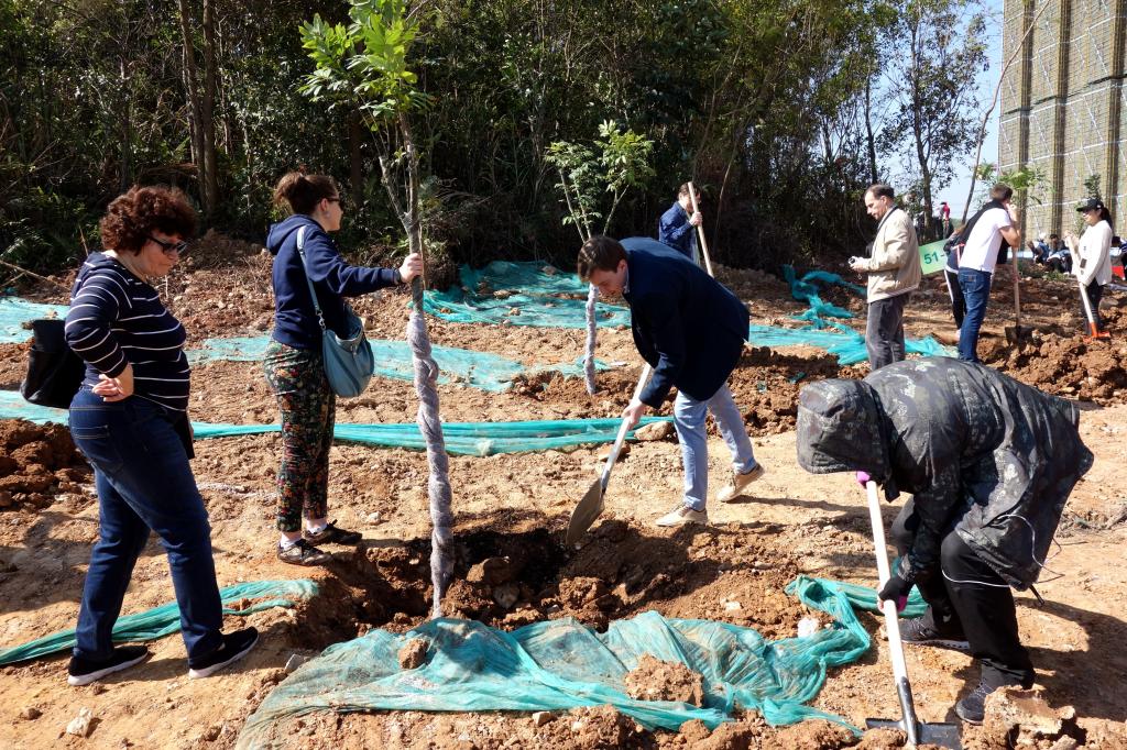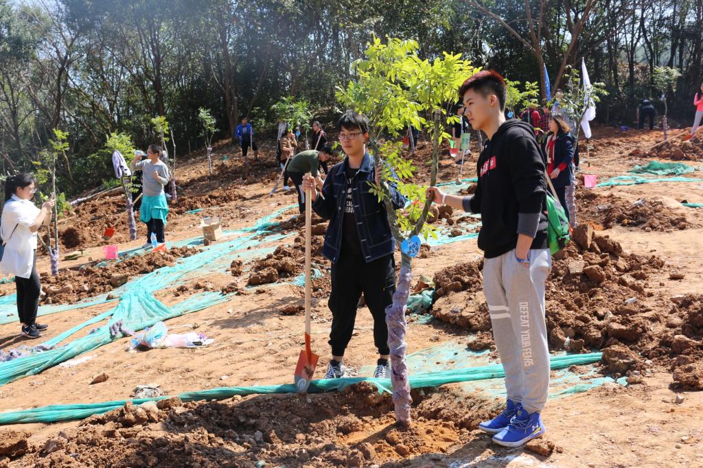 參加今天植樹活動的有深圳北理莫斯科大學、深圳市建設工務署工程管理中心、深圳北理莫斯科大學項目各參建單位、深圳北理莫斯科大學項目聯合黨支部共計200余人,其中俄羅斯老師和學生有20余人。在永久校區學生公寓樓旁的山坡上,大家種下了龍眼、荔枝、黃花風鈴木、紅花羊蹄甲等300株苗木。