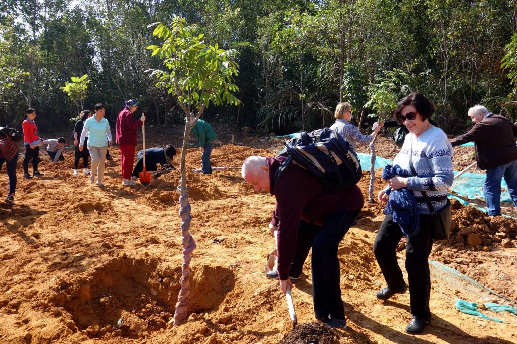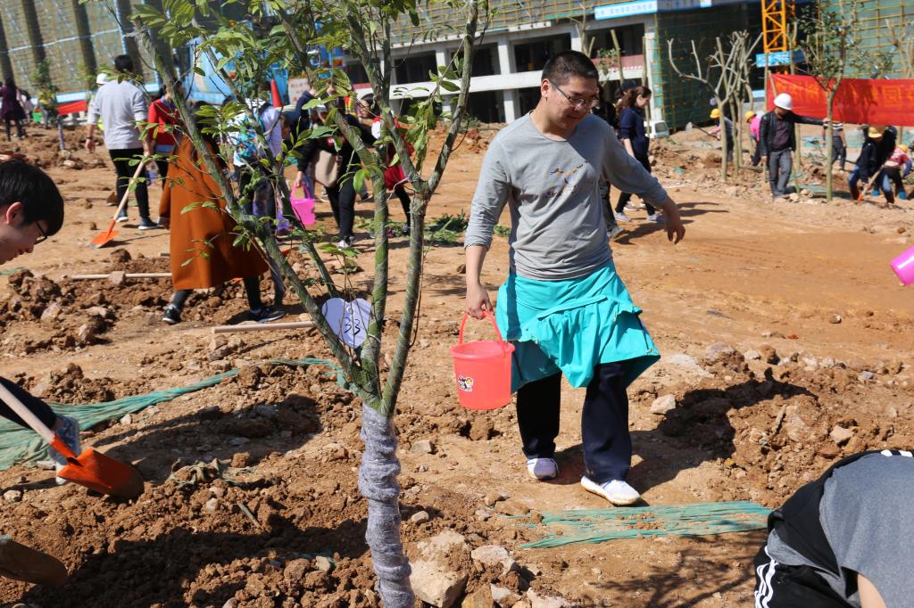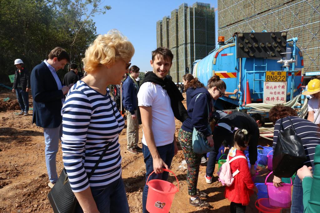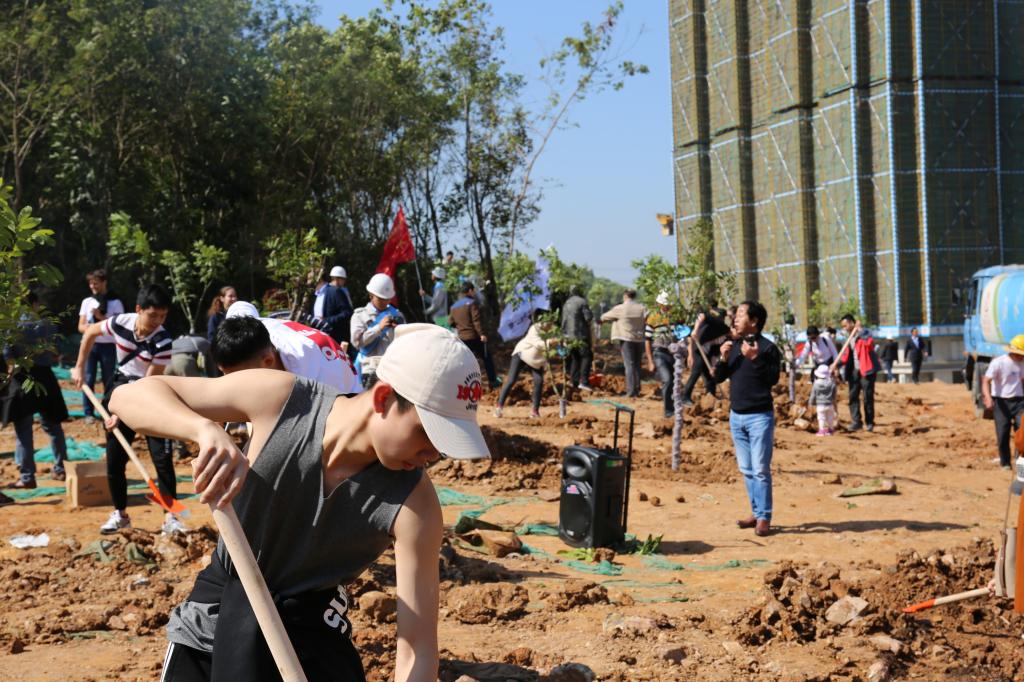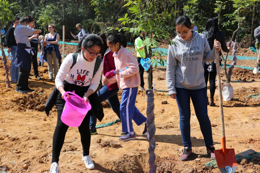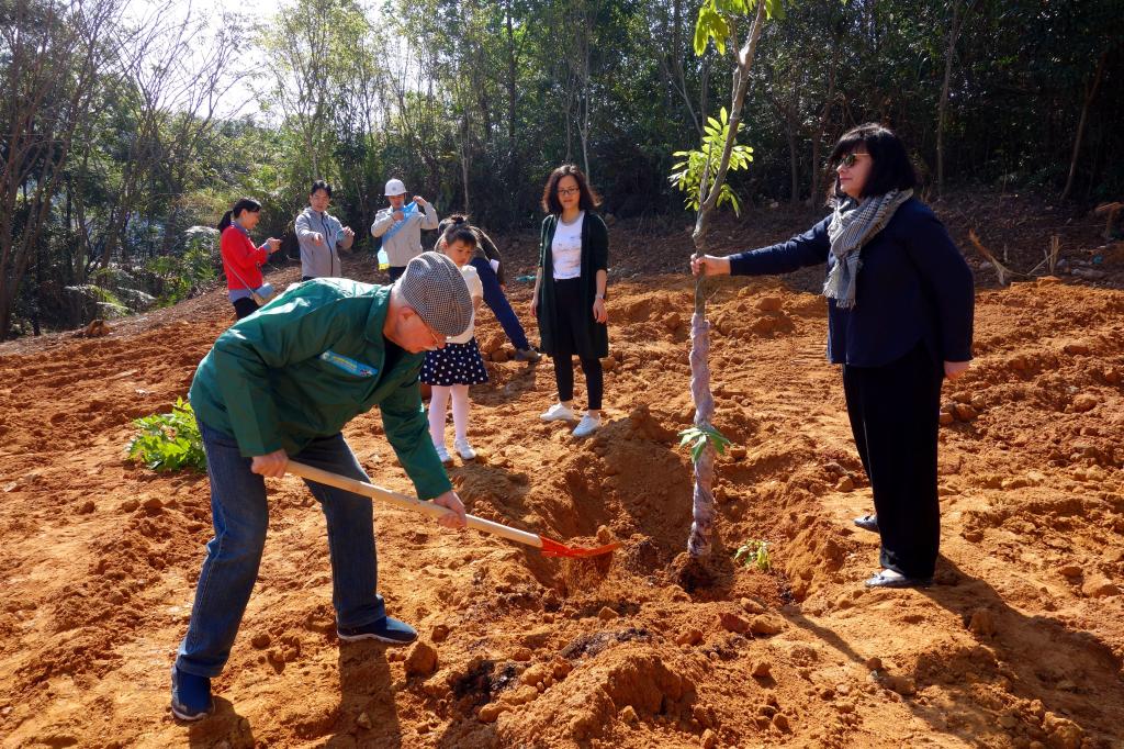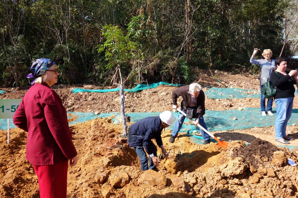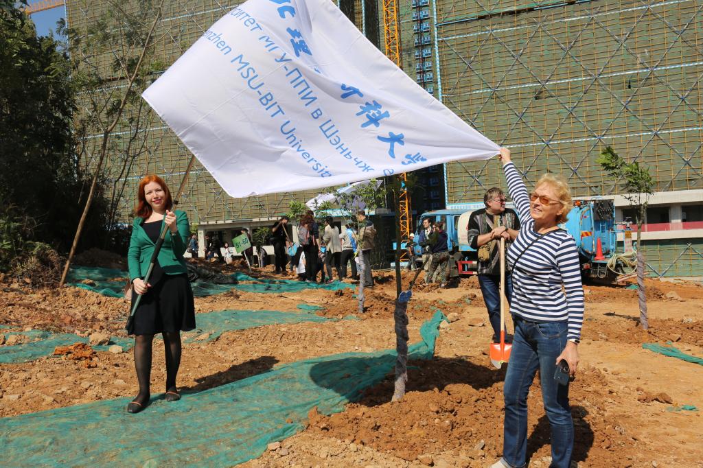參加今天植樹活動的有深圳北理莫斯科大學、深圳市建設工務署工程管理中心、深圳北理莫斯科大學項目各參建單位、深圳北理莫斯科大學項目聯合黨支部共計200余人,其中俄羅斯老師和學生有20余人。在永久校區學生公寓樓旁的山坡上,大家種下了龍眼、荔枝、黃花風鈴木、紅花羊蹄甲等300株苗木。
