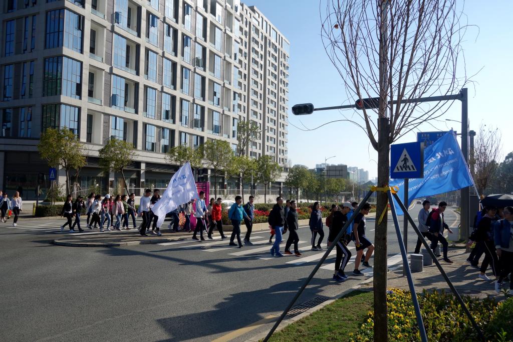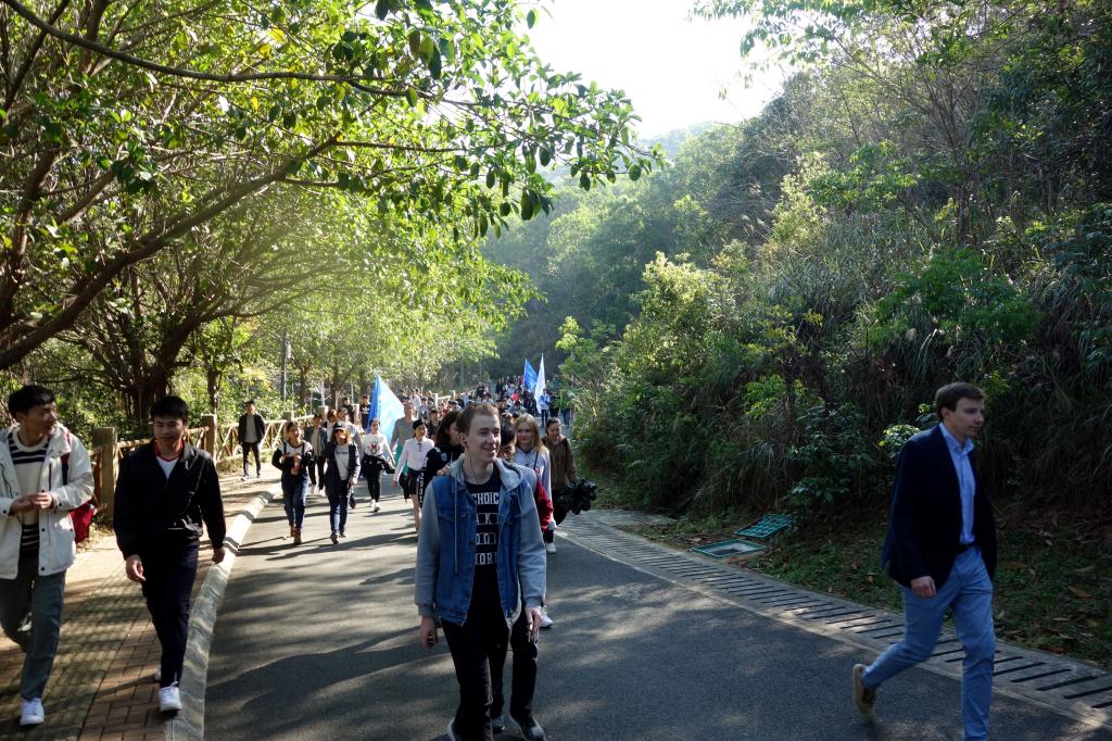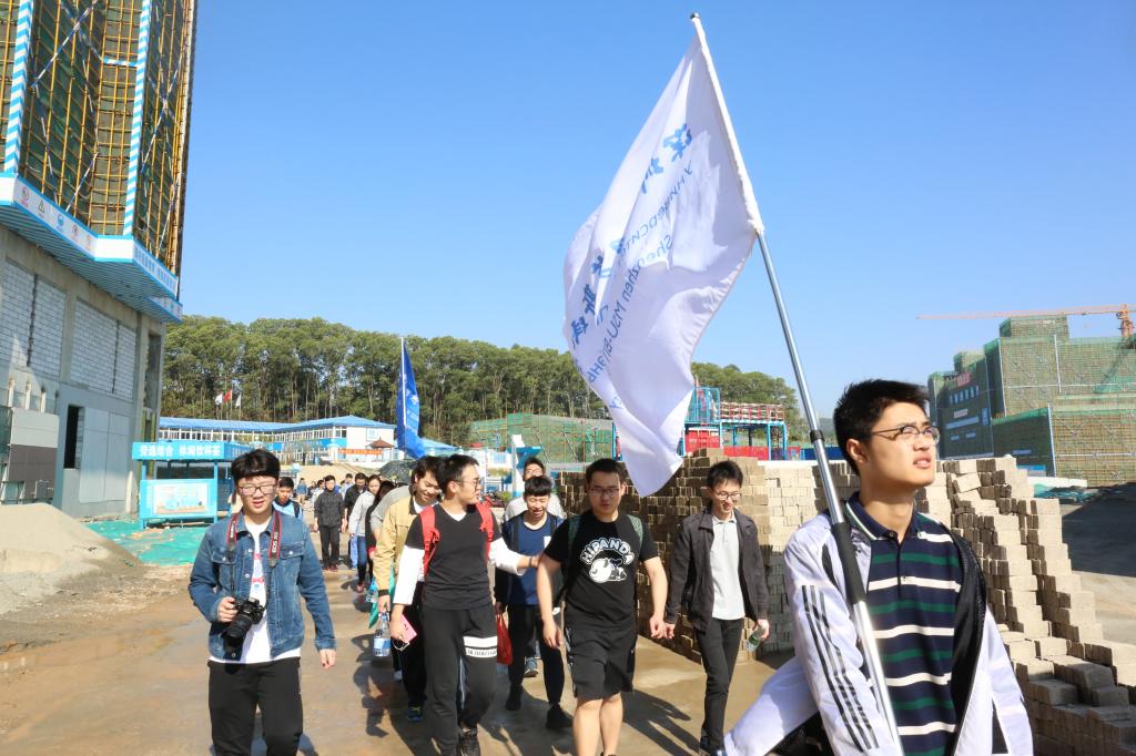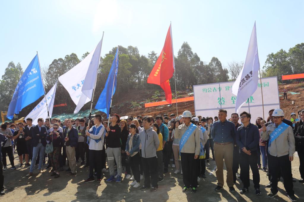 8點30分,100多名師生從過渡校區出發,高舉校旗,集體徒步前往永久校區。在深圳北理莫斯科大學趙平校長、深圳市建設工務署工程管理中心郭晨光主任分別簡短地發表本次植樹節倡議之后,植樹活動正式開始。