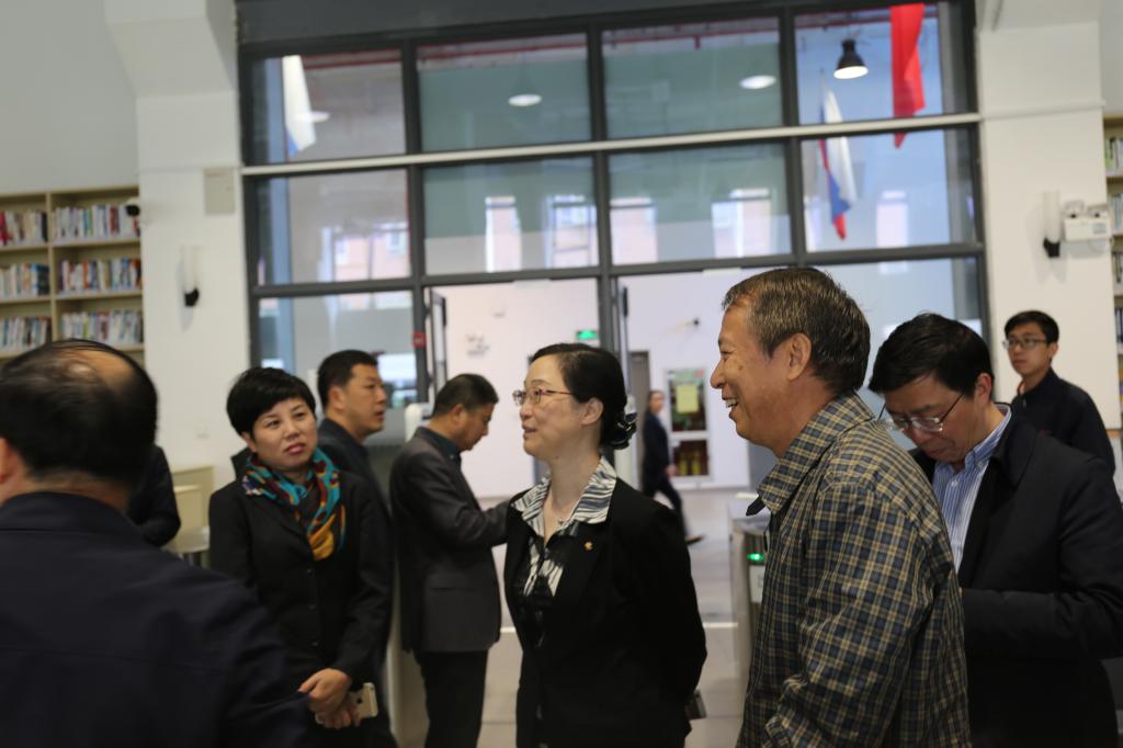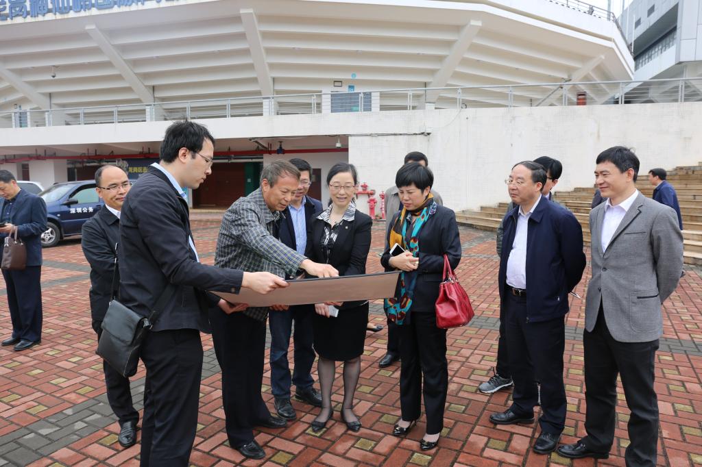 張建中副校長(zhǎng)為考察團(tuán)介紹永久校區(qū)規(guī)劃建設(shè)情況
