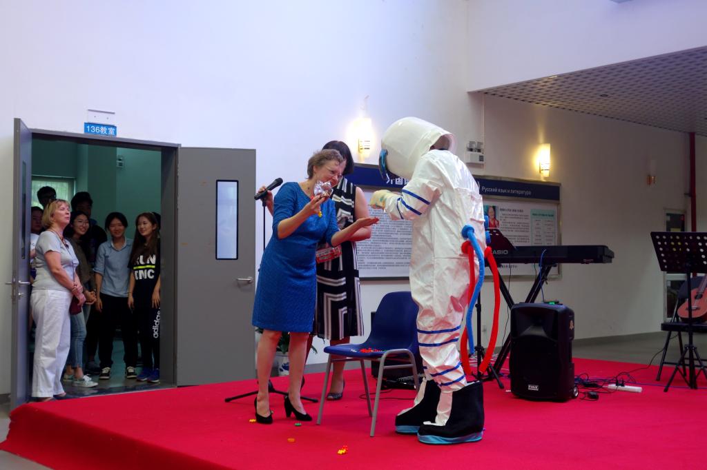 本次活動由俄羅斯教師摩爾古諾娃和克留科夫主持。學(xué)校全體本科生、研究生、國際學(xué)生、俄羅斯教師參加了此次活動。校長趙平、副校長塔拉索夫、學(xué)術(shù)事務(wù)部第一副部長楊剛、俄語語言中心主任博爾久戈夫斯基、副主任李小青和中心全體工作人員一同參加了上述活動。此外,深圳市部分中學(xué)俄語教師應(yīng)邀參加了本次活動。