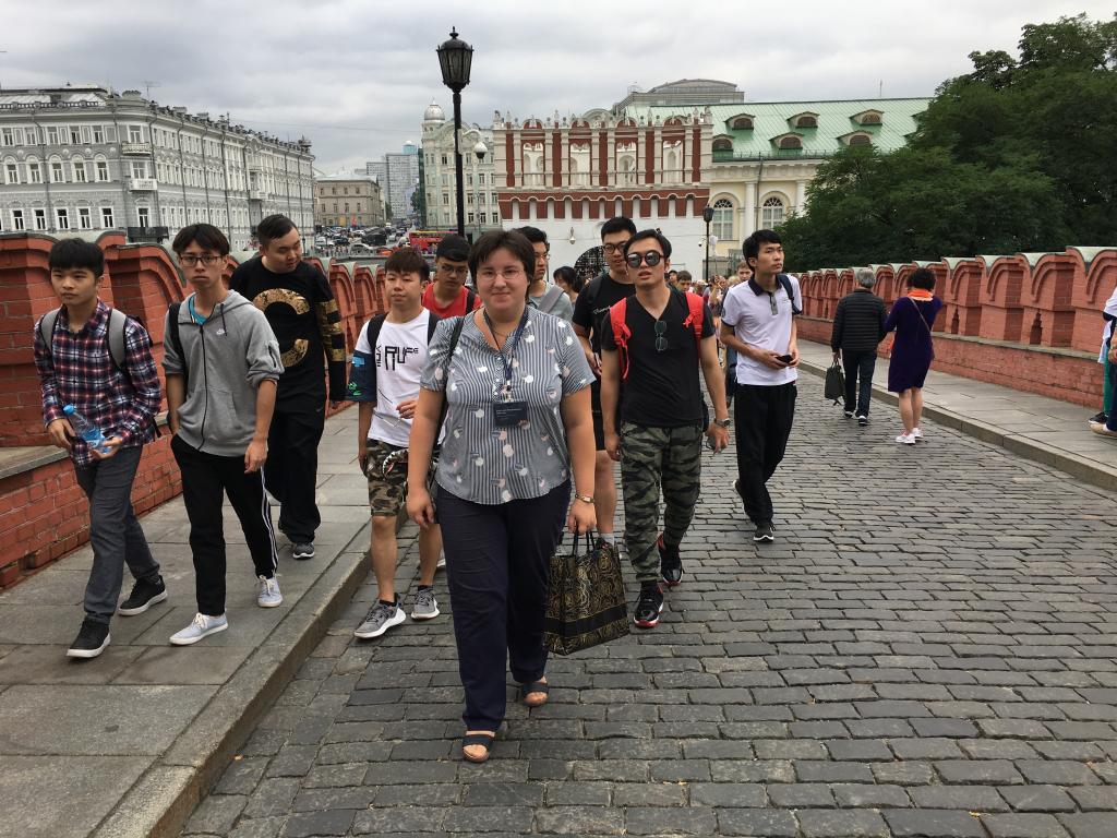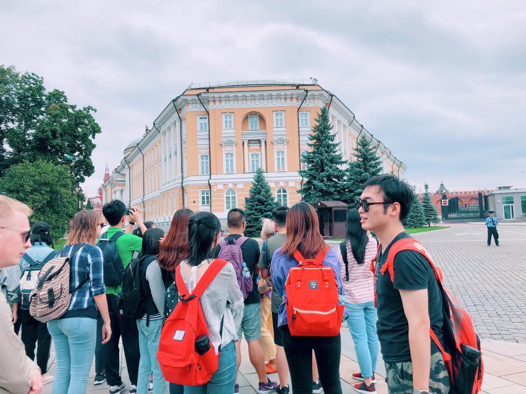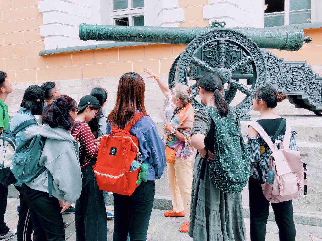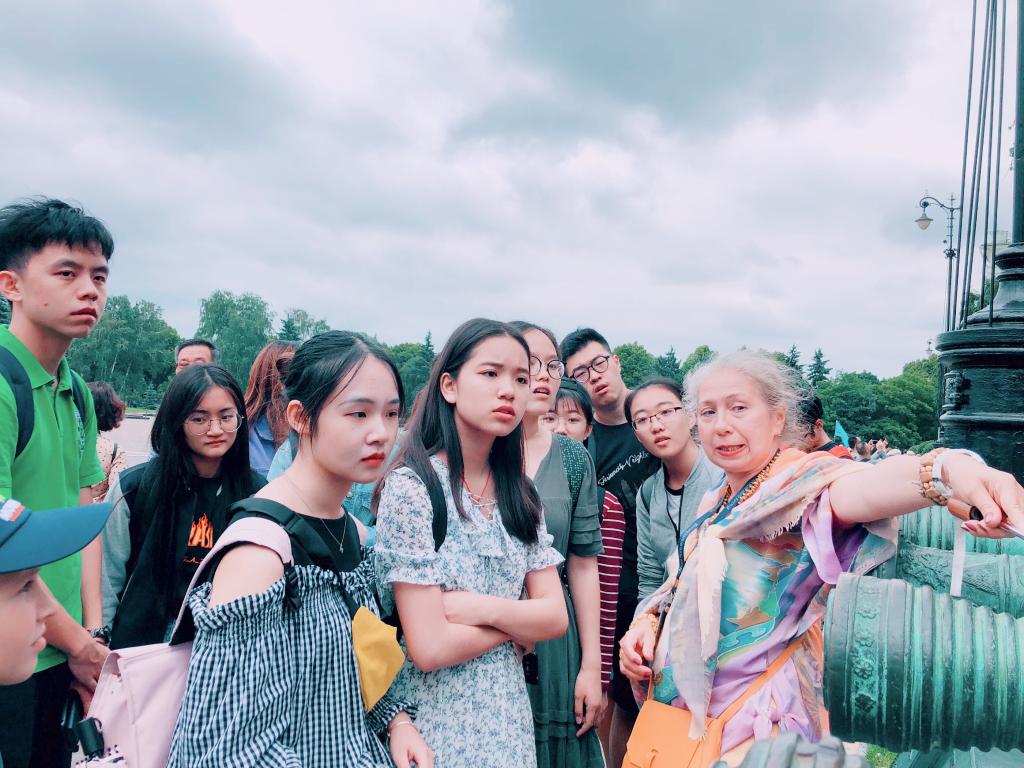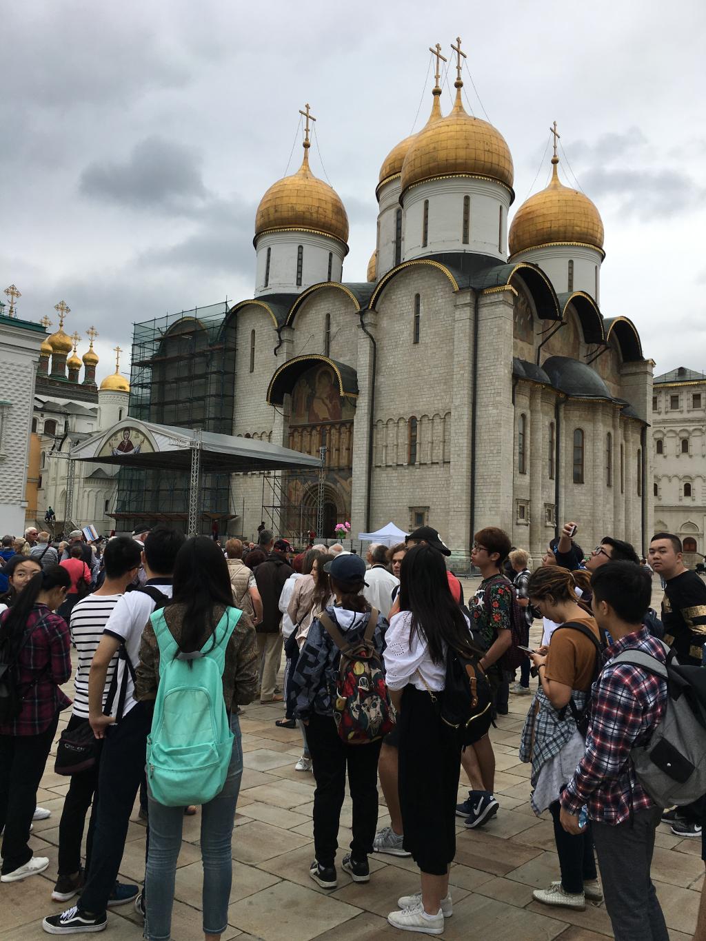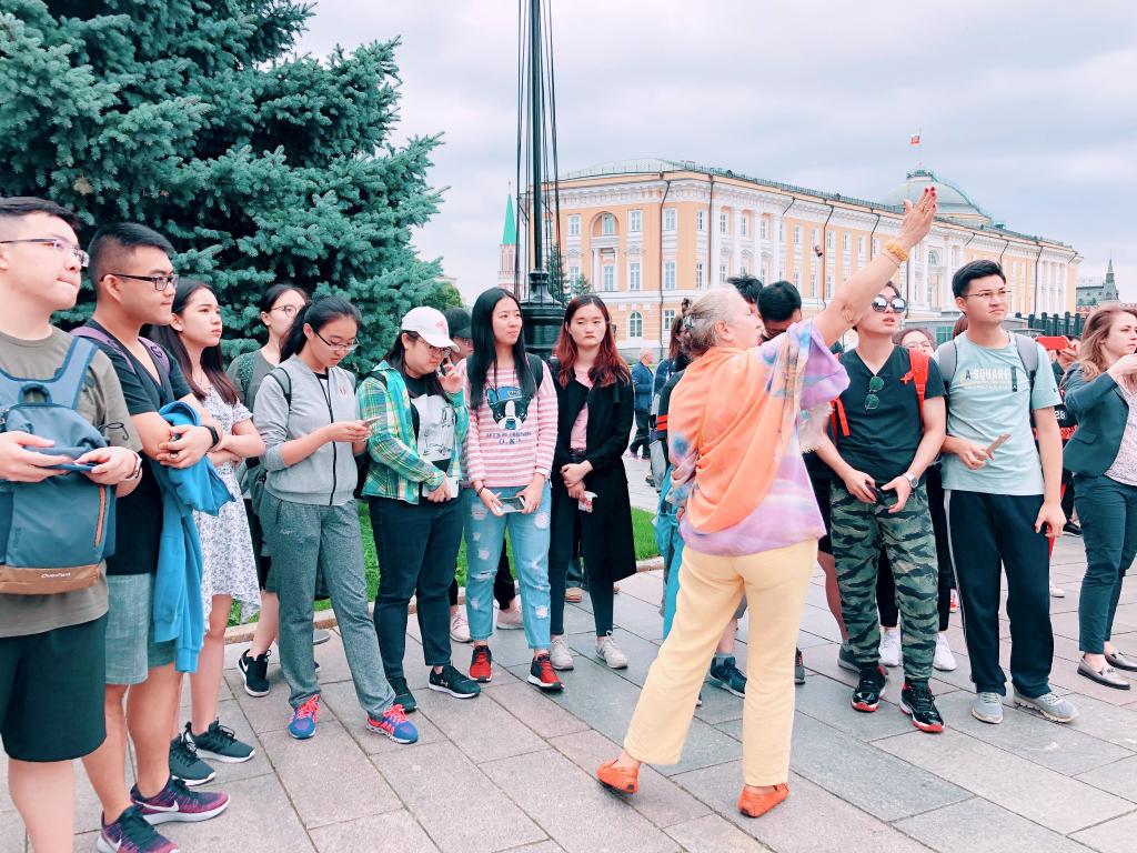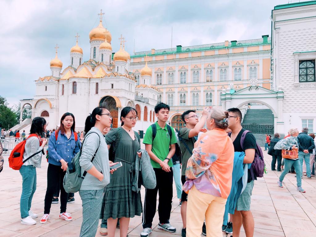 7月24日,我校夏令營(yíng)活動(dòng)進(jìn)入第五日,學(xué)生們的學(xué)習(xí)狀態(tài)已漸入佳境。今天的俄語(yǔ)課主題是《俄羅斯歷史主要事件》。課后,同學(xué)們一同前往莫斯科市中心參觀克里姆林宮。從13世紀(jì)起克里姆林宮就與俄羅斯所有重大歷史政治事件有關(guān)。它是俄國(guó)歷代帝王的宮殿(目前是俄羅斯總統(tǒng)辦公所在地,俄羅斯國(guó)家形象標(biāo)志),是俄羅斯民族最負(fù)盛名的歷史豐碑,也是全世界建筑中最美麗的作品之一。同學(xué)們?cè)诙砹_斯老師和導(dǎo)游的帶領(lǐng)下,走進(jìn)克里姆林宮,感受它那高大堅(jiān)固的圍墻、壯觀的塔樓和鐘樓,以及氣宇軒昂的建筑,聽(tīng)導(dǎo)游一一講解,參觀炮王、鐘王和圣母升天大教堂等。切身實(shí)地感受和了解俄羅斯的歷史文化。