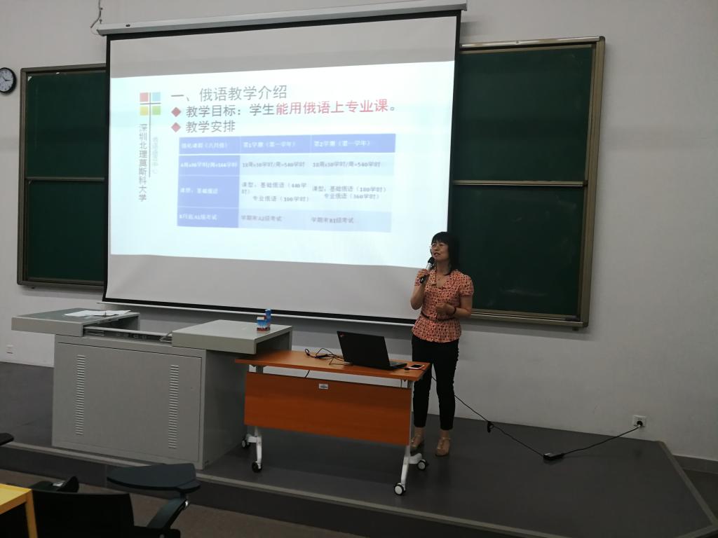 2018年8月20日下午,俄語語言中心組織開展了俄語入門學習指導講座,2018級本科生、班主任和學生工作部全體人員參加了講座。講座由俄語語言中心副主任李小青講授。她簡要介紹了我校俄語教學的目標要求和總體安排,分享了俄語學習的方法和經驗。從初學者學習俄語的難點角度,指導同學們如何突破語言差異障礙,利用學校獨有的語言環境優勢,打牢俄語學習基礎。為新生克服初學難關、穩步提升俄語水平給出了指導性建議。