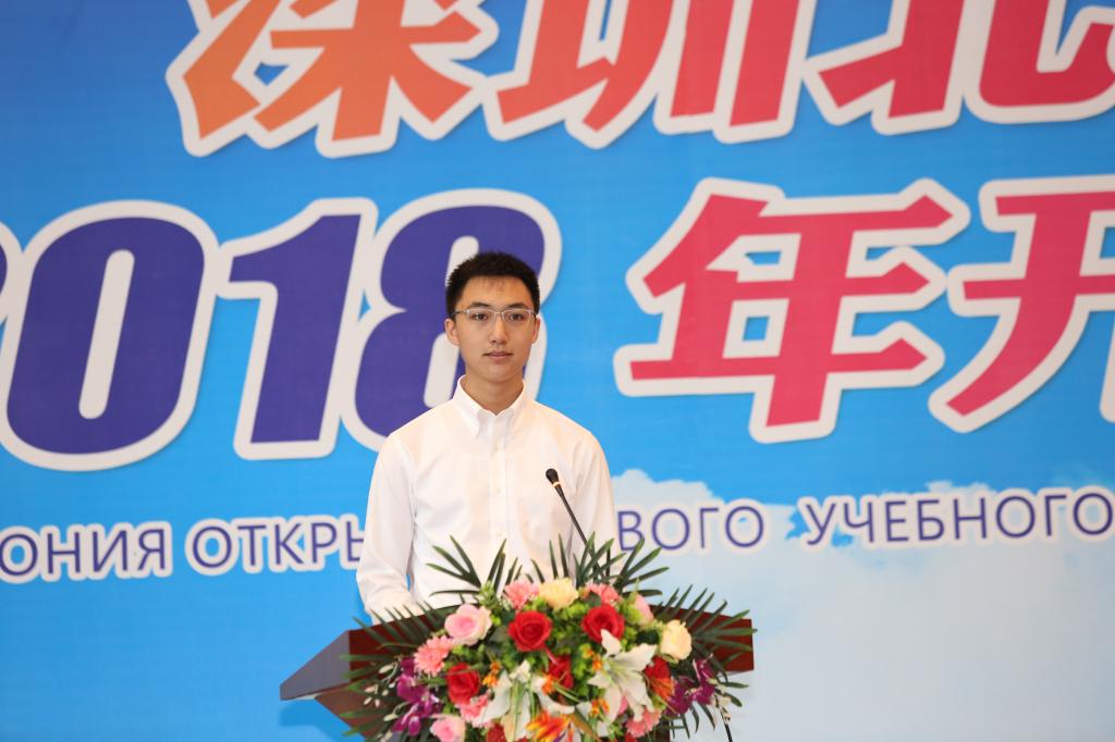 2018級本科生代表材料科學與工程專業周容寬同學在發言中說:“我幸運地成為了深北莫的一份子。同學們都非常努力進取。俄語老師不僅在課堂上認真講授俄語,還會在自習課和課外活動中耐心地解答我們的疑惑,他們令人欽佩的敬業精神深深影響了我們,讓我相信在這樣的環境中學習和生活我的青春一定會絢麗綻放!”周容寬表示,一定會繼承發揚學校的優良學風,堅定信心,腳踏實地,打牢第一年的俄語學習基礎。