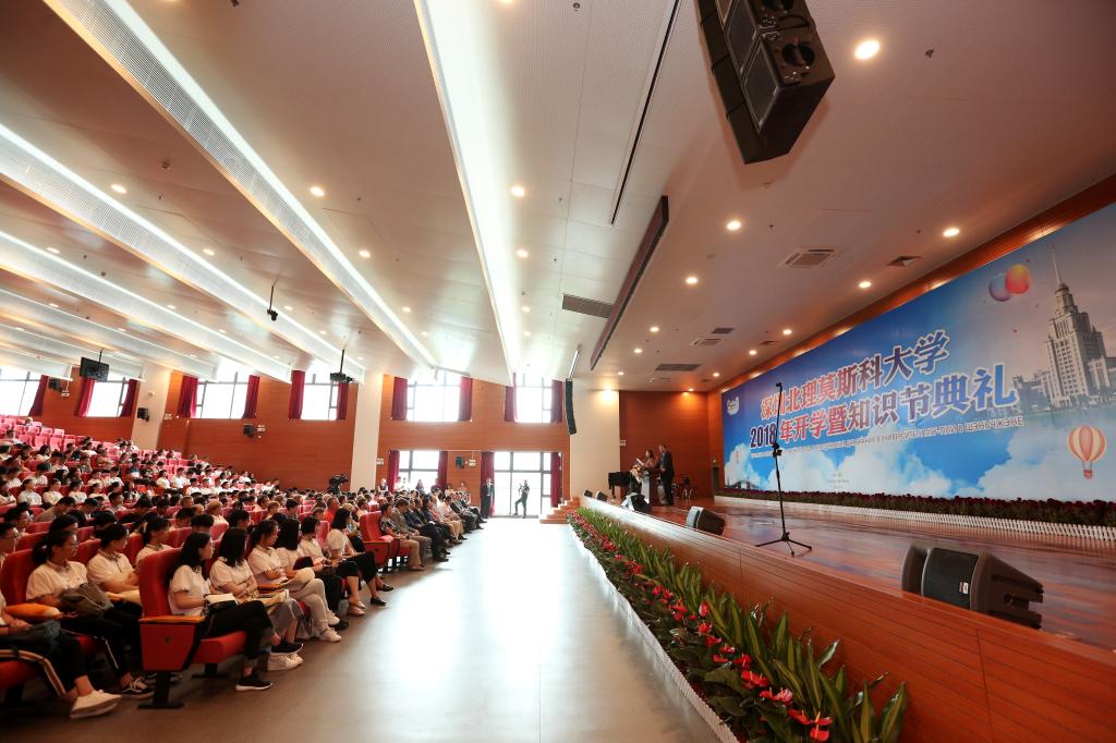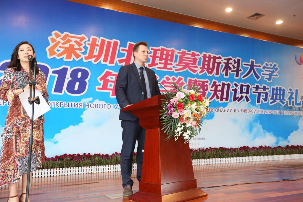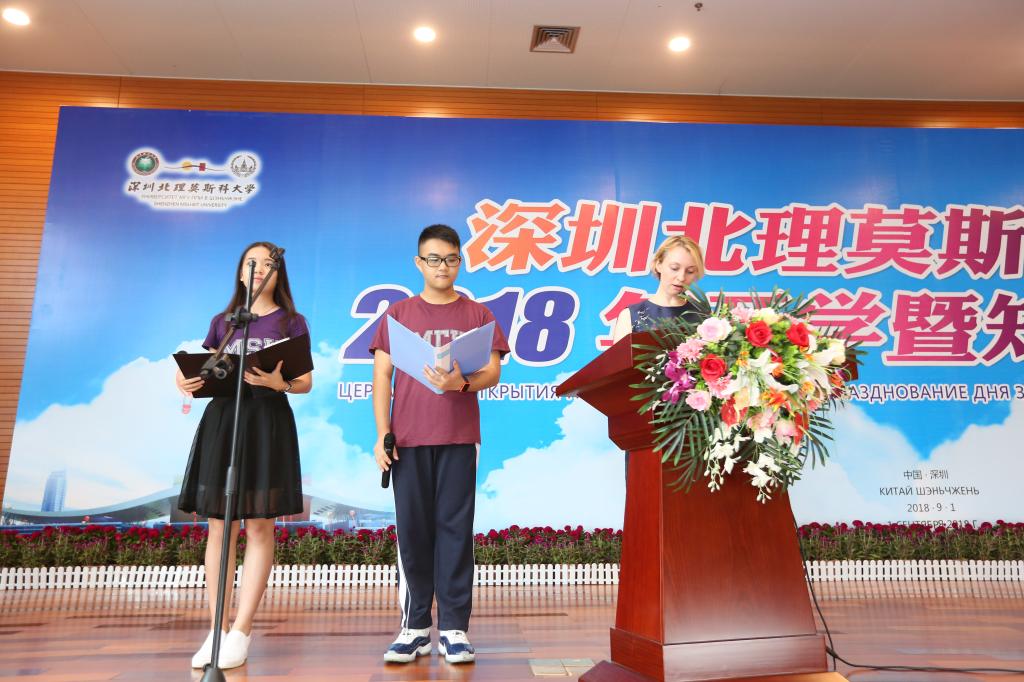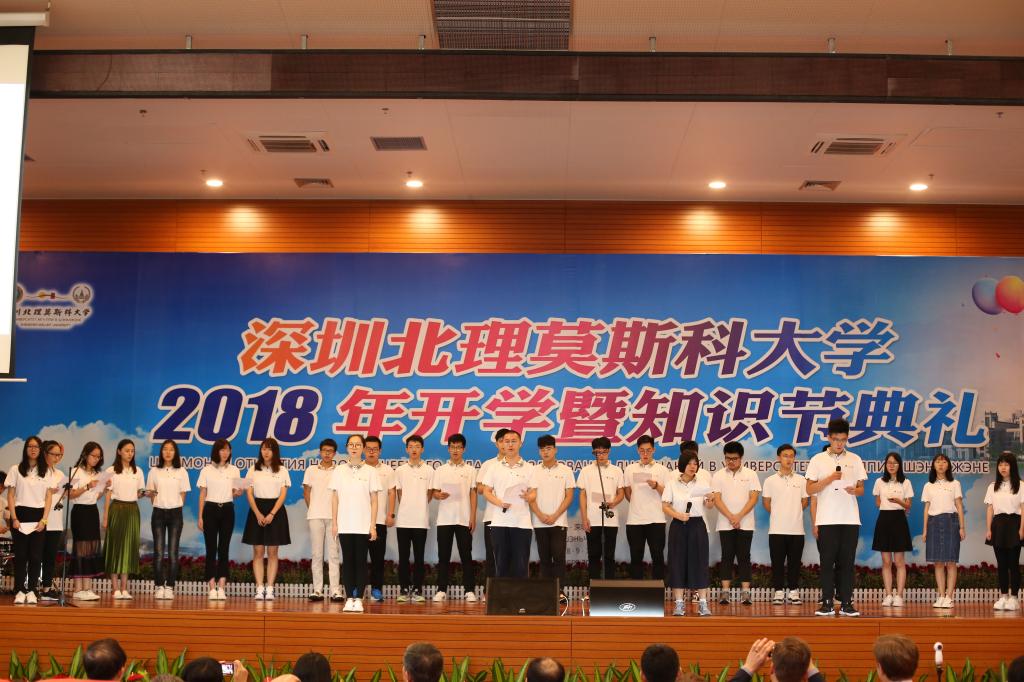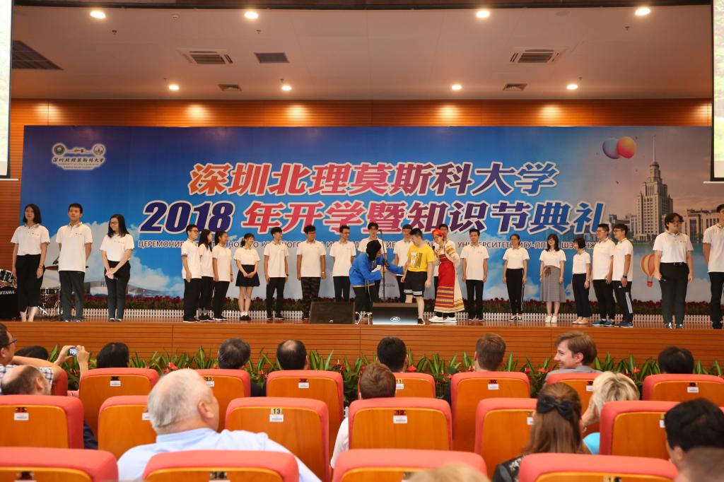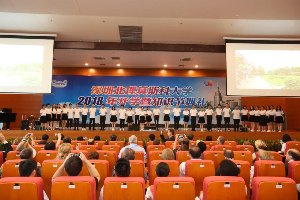 9月1日上午,深圳北理莫斯科大學在過渡校區禮堂隆重舉行2018年開學暨知識節典禮。深圳市教育局許建領副局長、中外合作辦學處楊蓓處長、俄羅斯駐廣州總領事館米德波夫領事等領導和嘉賓以及學校全體師生出席了典禮儀式。