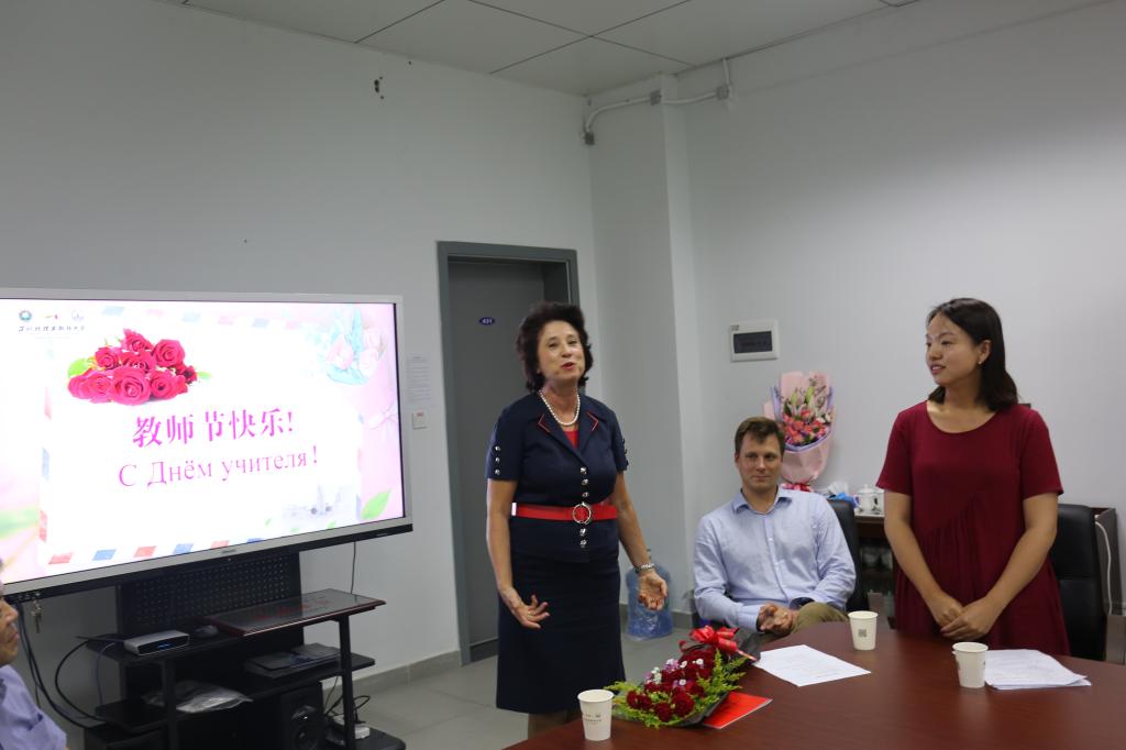我校教職工共聚一堂,以慶祝中國教師節(jié)的形式,表達(dá)全校對教師們的感謝和祝福,同時對優(yōu)秀教師和先進(jìn)集體進(jìn)行表彰。趙平校長、塔拉索夫執(zhí)行第一副校出席今天的活動。