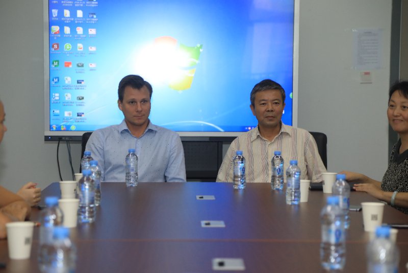 隨后,校長趙平、執行第一副校長塔拉索夫、國際事務部部長冀四梅與來訪團進行了座談會,三名2018級碩士研究生也一同參與了此次會議。會上,趙平校長首先對遠道而來的俄羅斯友人表示熱烈歡迎,詳細介紹了學校的育人使命,并希望借此之機讓更多的青年創業者了解我校,提供更多的創業機遇。塔拉索夫副校長則著重介紹了我校的發展歷程和未來的辦學規模,并一一詳盡的回答了來訪團提出的問題。會上雙方表達了對未來共同合作的興趣和期望。