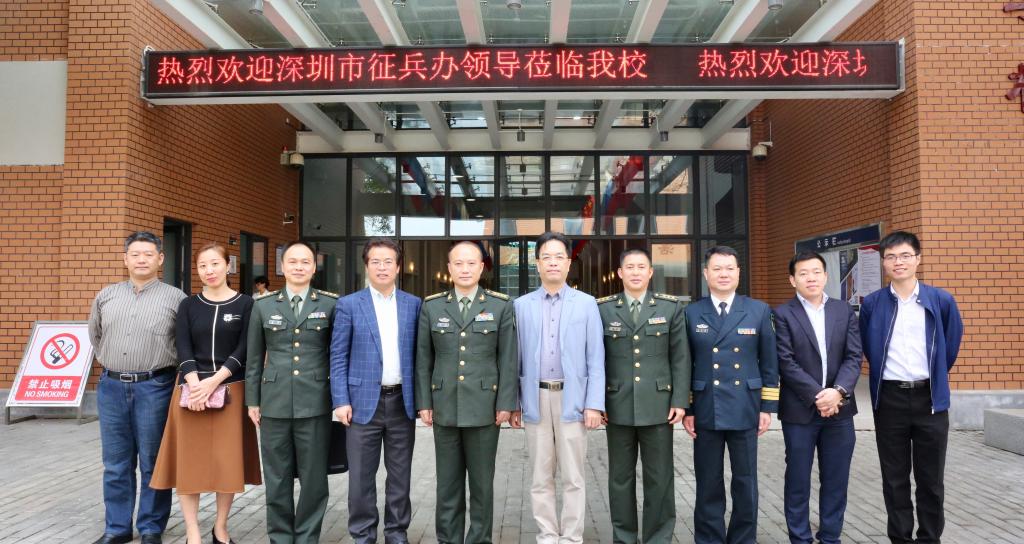 3月19日,深圳市征兵辦公室主任、警備區副司令員喻曉,警備區動員處長王志文,警備區政治工作處主任趙華,龍崗區委常委、人民武裝部部長馮志剛一行到學校調研交流,學校代理校長唐水源,黨委書記、副校長陸萬偉,相關部門負責人在過渡校區同到訪領導就推進征兵工作、加強學校國防教育等方面進行座談。