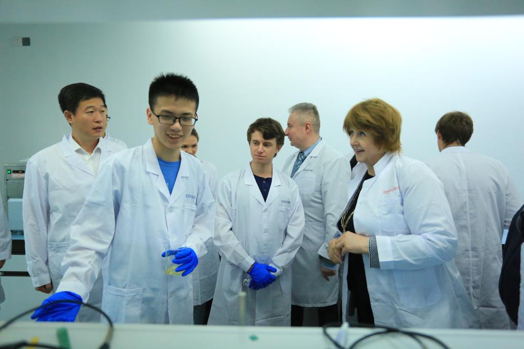 在過渡校區,瑪麗娜·博羅夫斯卡婭副部長走進實驗室與正在做實驗的師生進行交流,同時了解了學校各系各專業的建設情況。瑪麗娜·博羅夫斯卡婭對學校發展給予了高度評價,她同時指出:“深圳北理莫斯科大學是俄中元首提出的兩國科教合作的杰出項目。”