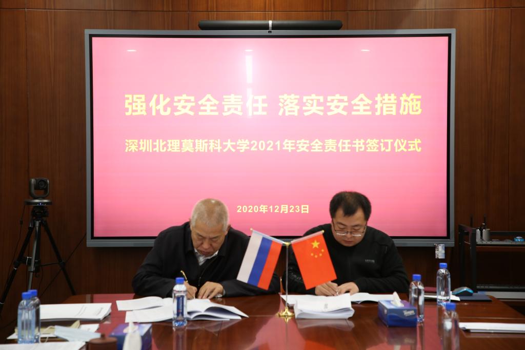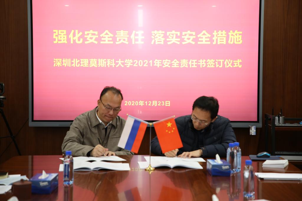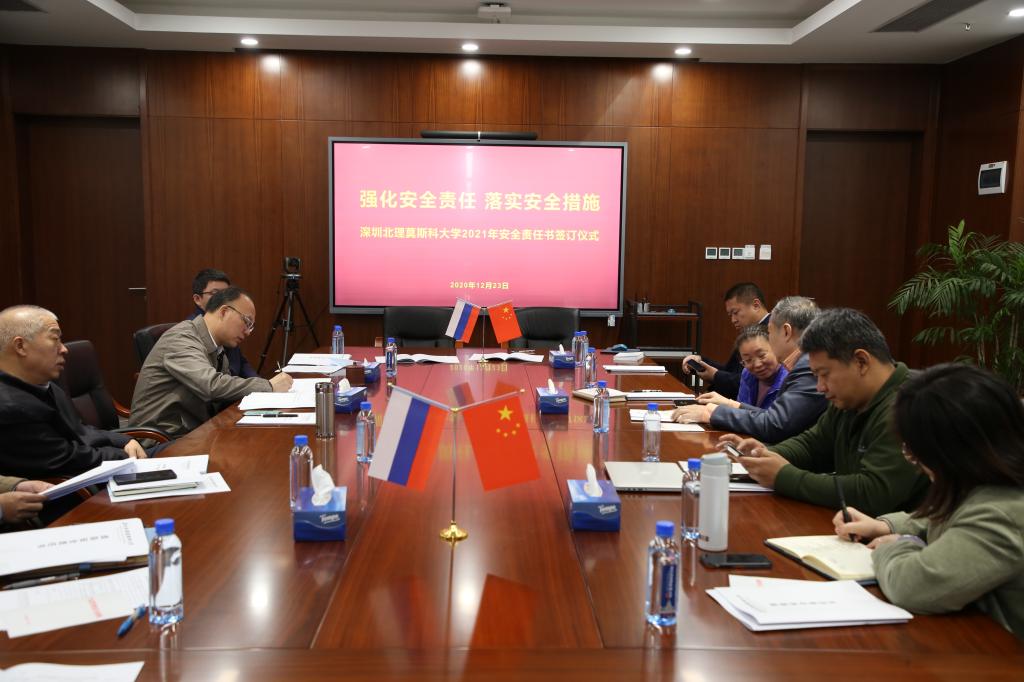 為認真做好學校安全管理工作, 12月23日,深圳北理莫斯科大學舉行2021年學校安全責任書簽訂儀式。學校校長李和章,黨委書記、副校長朱迪儉以及各部門負責人參加簽訂儀式。