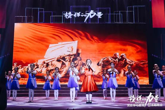 晚會在熱情洋溢的開場節目《少年》的歌舞演出中拉開帷幕,此次晚會共分為四大篇章,整場晚會用豐富多彩、生動鮮活的藝術形式,重溫建黨100年來涌現出的榜樣人物為人民戰斗、為祖國奉獻的英雄事跡,引導龍崗青年學習榜樣跟黨走、紅色基因代代傳,汲取力量勇擔當、不忘初心再出發。