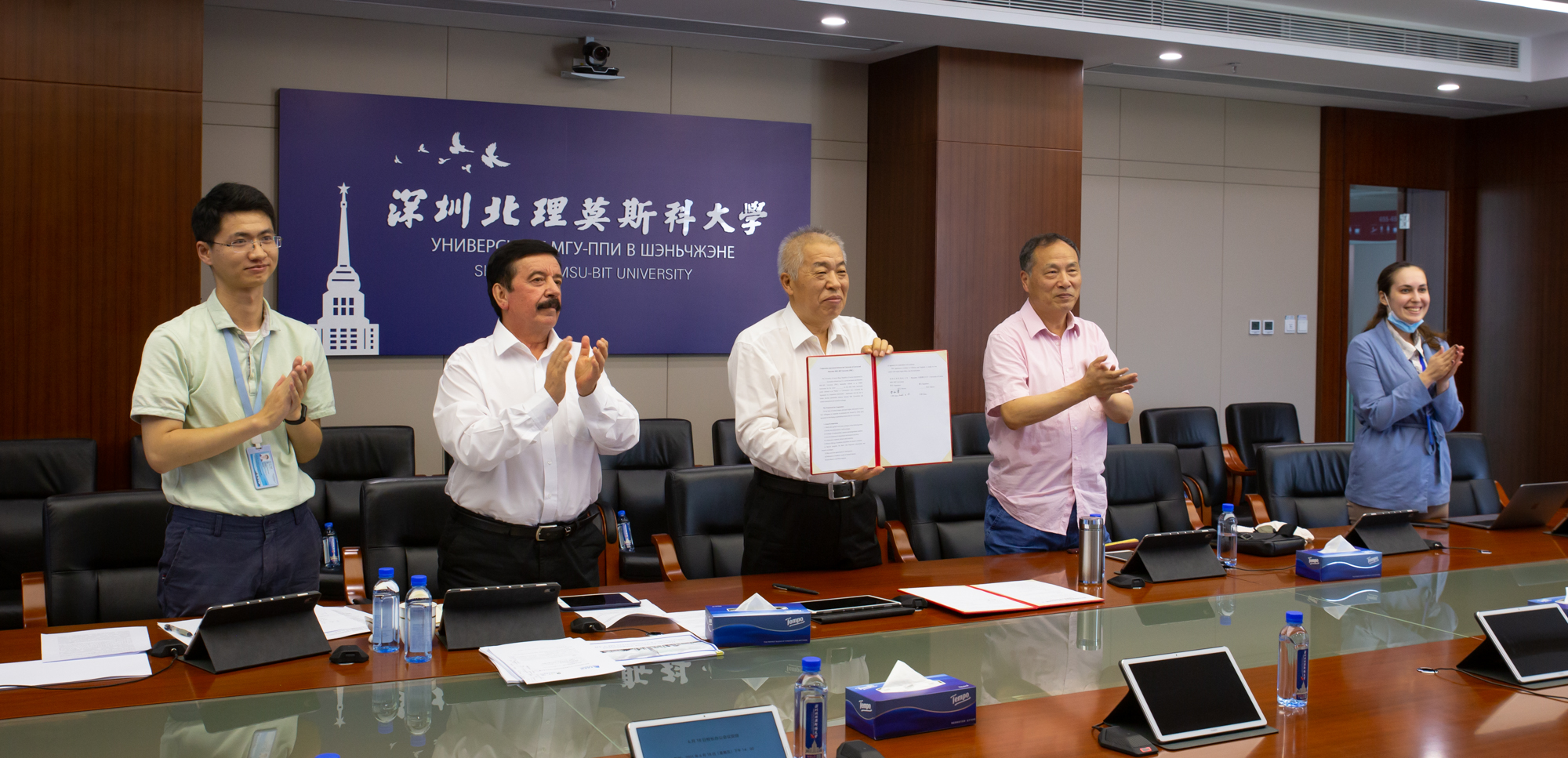 俄羅斯科學院遠東所所長阿列克謝·馬斯洛夫教授、拉脫維亞大學副校長瓦爾迪斯·塞格林什教授、深圳北理莫斯科大學校長李和章、第一副校長謝·米·沙赫賴、董事會主席顧問楊心宇教授參與線上簽約儀式。儀式由沙赫賴第一副校長主持。