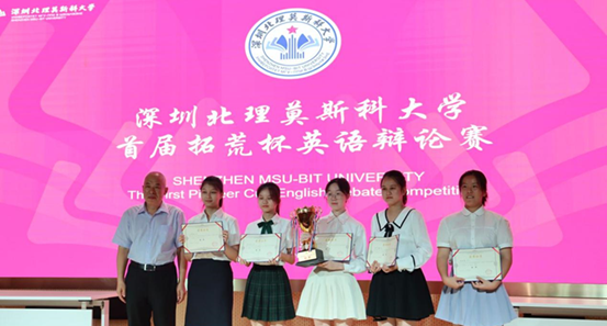 經過精彩激烈的角逐,最終誕生了冠亞季軍三支隊伍,共15名學生。深圳北理莫斯科大學校長李和章為冠軍隊伍頒獎并致辭,對此次英語辯論賽表達了高度認可,充分肯定了學生英語思辯能力與積極參賽的熱情。李和章校長鼓勵學生們要勇于用英語和俄語進行表達,將自身專業與英語、俄語結合,努力成為現代化社會中重要的復合型人才。