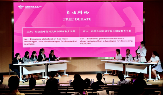 決賽現場,雙方隊伍就辯題“經濟全球化對發展中國家利大于弊/弊大于利”用英語展開了激烈的討論,利用民生數據及國際化信息,從經濟、政治、文化三個維度對論題加以支撐,為評委老師和觀眾們呈現了一場絕佳的辯論賽。