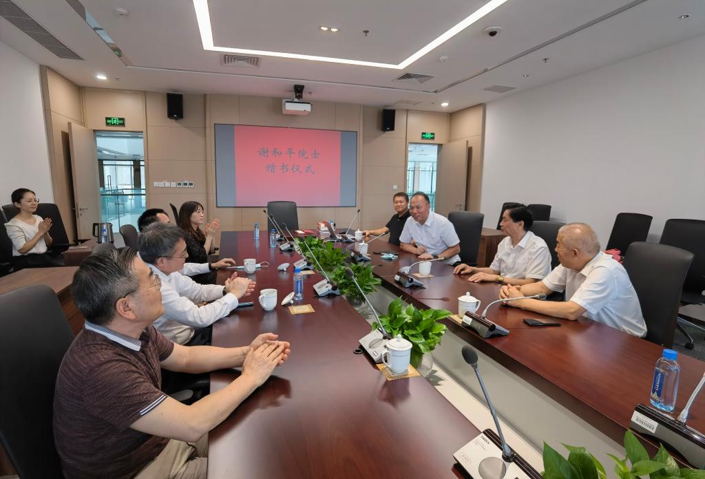 李和章校長對謝和平院士向我校贈送書籍、為深北莫圖書館的發展建設作出貢獻表示感謝,并希望繼續加強學術與圖書資源等方面合作。李和章校長表示,此次贈書活動給深圳北理莫斯科大學帶來了寶貴的資源,對繁榮深北莫校園文化和學校發展建設都將產生積極作用。謝和平院士表示,此次贈書活動是深圳北理莫斯科大學校領導高度重視文化工作、著力加強文化、學術建設的重要舉措,有利于提高學生綜合素質,激發學習研究熱情。深圳技術大學副校長梁永生表示,出席此次贈書活動為兩所高校進一步交流合作、共建共進奠定了堅實的基礎。儀式上,李和章校長為謝和平院士頒發證書。