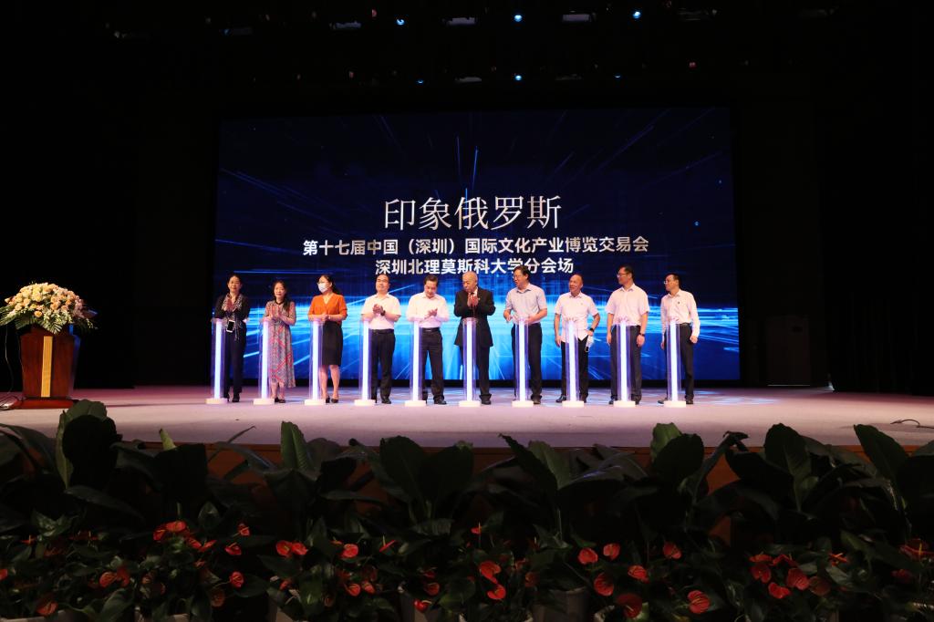 9月23日下午,印象俄羅斯——第十七屆中國(深圳)國際文化產業博覽交易會深圳北理莫斯科大學分會場開幕式在學校禮堂舉行。龍崗區文化廣電旅游體育局副局長李震,深圳職業技術學院校長許建領,深圳技術大學黨委副書記、紀委書記張巖鴻,深圳信息職業技術學院副校長周彥兵,中國國際象棋協會主席、國際象棋特級大師葉江川,深圳棋院院長劉適蘭,中國棋院國際跳棋和五子棋部主任、圍棋職業九段張文東,象棋特級大師、象棋女子世界冠軍王琳娜以及各高校、協會及企業相關領導及代表出席開幕式。參加開幕式的還有深圳北理莫斯科大學校長李和章,黨委書記、副校長朱迪儉,黨委副書記、紀委書記陳超峰和師生代表,以及深圳信息職業技術學院學生代表。