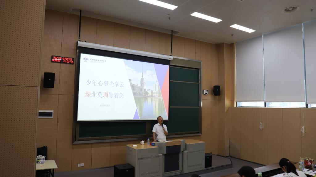 10月7日,作為此次文博會深圳北理莫斯科大學分會場的“壓軸”客人,深圳大學附屬中學60余名學生代表到校園進行參觀。深圳北理莫斯科大學黨委書記、副校長朱迪儉代表學校對這批客人表示熱烈歡迎,并以“少年心事當拿云,深北莫圳等著您”為主題向參觀校園的學生代表作講座。