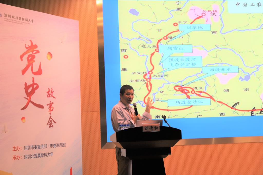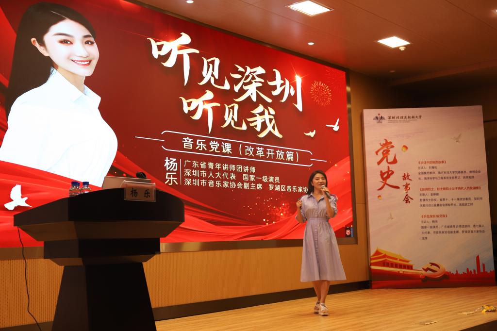 本次活動特別邀請了全國模范教師、南方科技大學黨委委員、教授會會長、海洋科學與工程系黨支部書記、講席教授劉青松,彭湃烈士孫女、省第十、十一屆政協委員、深圳市關愛行動公益基金會原秘書長、高級政工師彭伊娜,國家一級演員、廣東省青年講師團講師、市七屆人大代表、市音樂家協會副主席、羅湖區音樂家協會主席楊樂等三位嘉賓分別從不同角度帶來3個精彩紛呈的黨史故事。