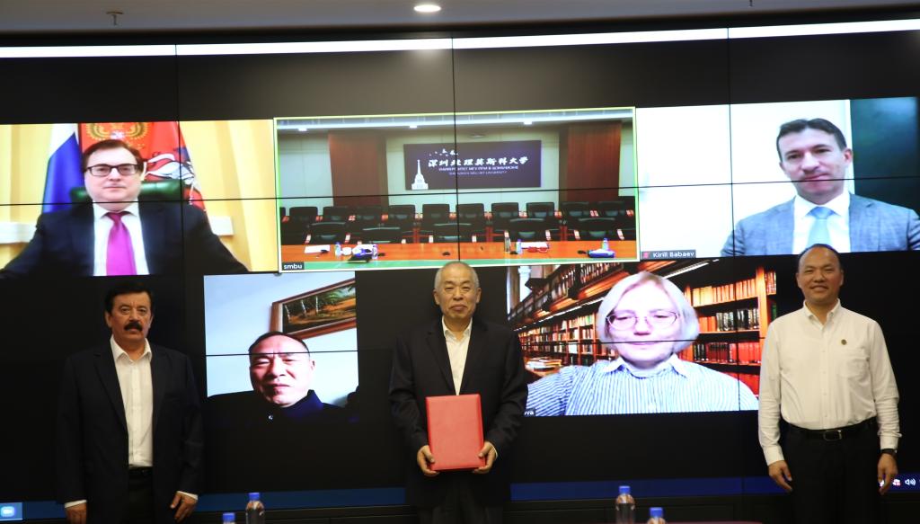 10月26日,深圳北理莫斯科大學與莫斯科國立羅蒙諾索夫大學亞非學院、俄羅斯科學院遠東所合作備忘錄簽署儀式以線上線下方式舉行。莫斯科國立羅蒙諾索夫大學亞非學院院長馬斯洛夫、俄羅斯科學院遠東所所長巴巴耶夫、深圳北理莫斯科大學校長李和章、黨委書記、副校長朱迪儉參加簽署儀式。深圳北理莫斯科大學第一副校長謝·米·沙赫賴主持儀式。