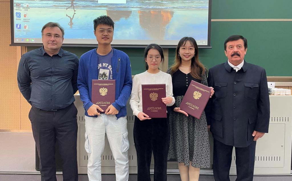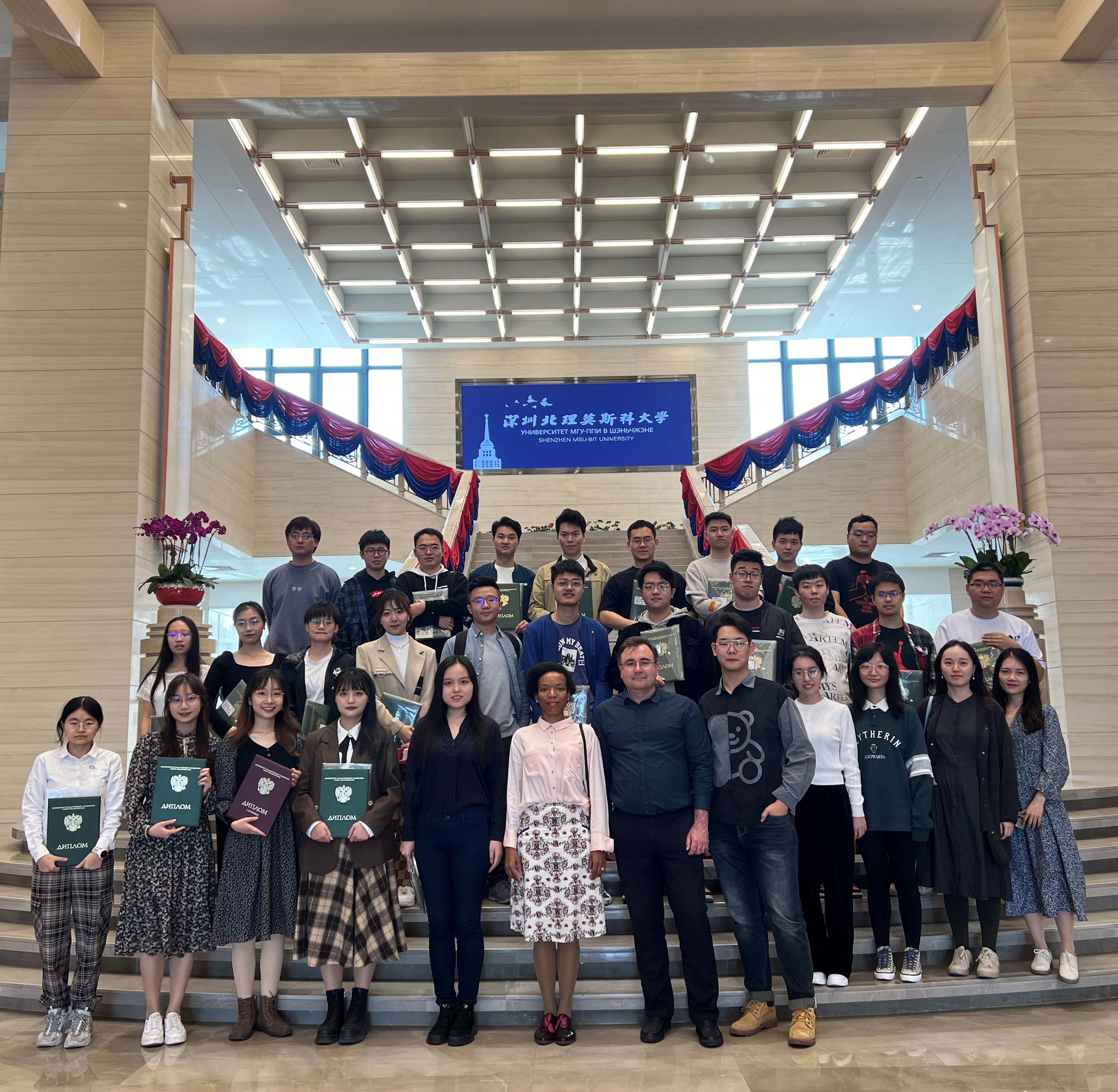 11月27日上午,計算數(shù)學與控制系在1教113階梯教室舉行2021屆數(shù)學與應用數(shù)學專業(yè)本科畢業(yè)生莫斯科國立大學畢業(yè)證授予儀式。計算數(shù)學與控制系副主任布達克主持儀式,深圳北理莫斯科大學第一副校長謝·米·沙赫賴出席儀式并為2021屆數(shù)學與應用數(shù)學專業(yè)本科畢業(yè)生頒發(fā)畢業(yè)證書。