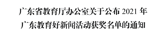 據悉,廣東省教育廳于2021年10月舉辦廣東教育好新聞評選活動。活動旨在進一步加強廣東省教育新聞宣傳工作,引導教育戰線的新聞宣傳工作者、各媒體教育線的記者積極采訪報道新時代廣東教育好新聞,傳播新時代廣東教育好聲音,弘揚新時代廣東教育正能量。自活動啟動以來,各地教育部門、各普通高校及相關媒體積極參與,共收到作品950余篇。經專家、學者組成的評委會評定,共評選出一等獎61篇,二等獎96篇,三等獎150篇。