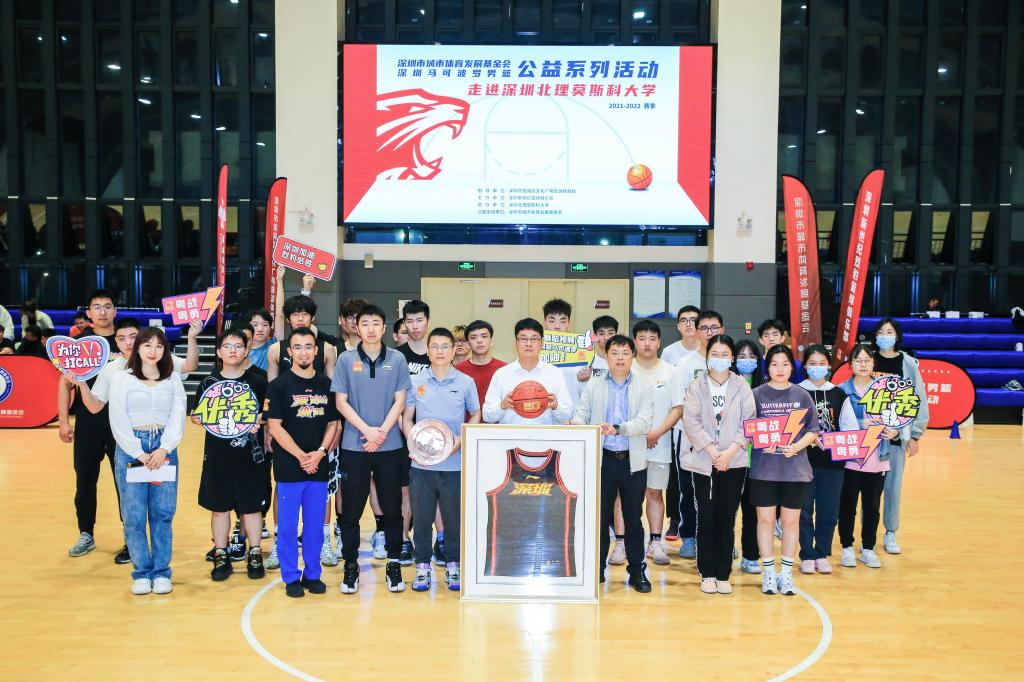 4月18日,由龍崗區文化廣電旅游體育局指導、深圳新世紀籃球俱樂部主辦、深圳北理莫斯科大學協辦、深圳市城市體育發展基金會支持的——深圳馬可波羅男籃2021-22賽季系列公益活動,走進了恢宏美麗的深圳北理莫斯科大學,雙方以公益籃球為名,展開了一場夢幻聯動。