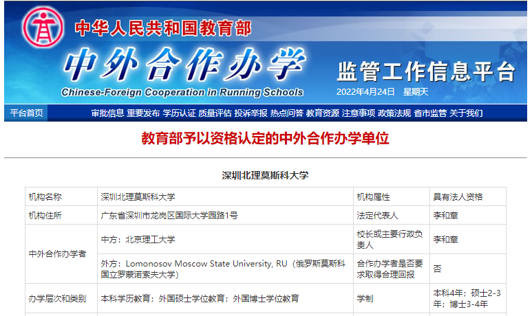 近日,教育部中外合作辦學監管工作信息平臺公布了學校新專業申報的獲批信息。2022年4月,學校增設2個本科學歷學位教育:化學(070301H)與漢語言(050102H);3個碩士學位教育:一級學科“化學”下的無機化學、一級學科“工商管理”下的國家審計、一級學科“法學”下的國際經濟(商)法。
