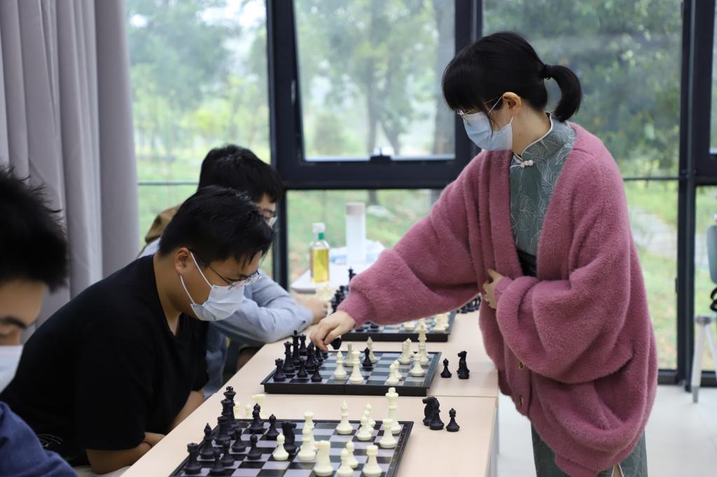 國際棋聯副主席、中國國際象棋主席葉江川先生,國際象棋特級大師、世界冠軍譚中怡女士與20名學生棋手進行車輪對弈。葉江川、譚中怡在此次交流對弈中充分發揮自身特長,毫不吝惜地對深北莫學子進行了十分有益的指導,并結合自身經歷,向深北莫學子分享了對于“喜迎二十大、奮進新征程”,以及傳承和發揚“五四精神”的見解,號召廣大青年展現朝氣蓬勃的青春風采,在校園內營造昂揚向上、奮發有為的氛圍。