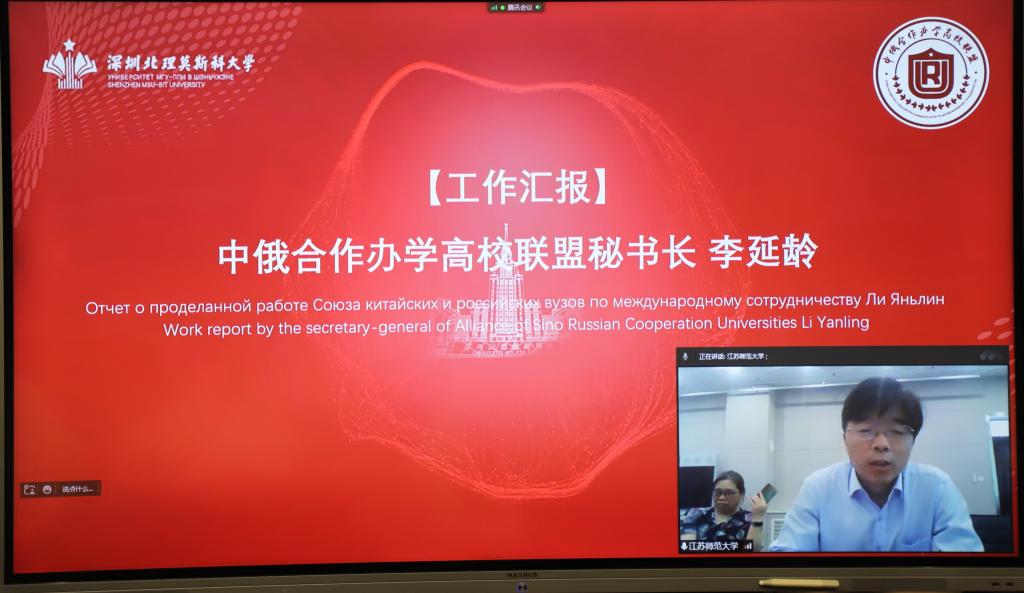 會上,江蘇師范大學圣理工學院-中俄學院院長、中俄合作辦學高校聯盟秘書長李延齡作聯盟工作匯報,常務理事代表們審議討論了教研課題申報、俄語演講比賽,學生工作委員會建設等事宜,確定了第二屆中俄合作辦學高校俄語演講比賽和2022年度聯盟會員大會將于今年10月在深圳北理莫斯科大學舉行。