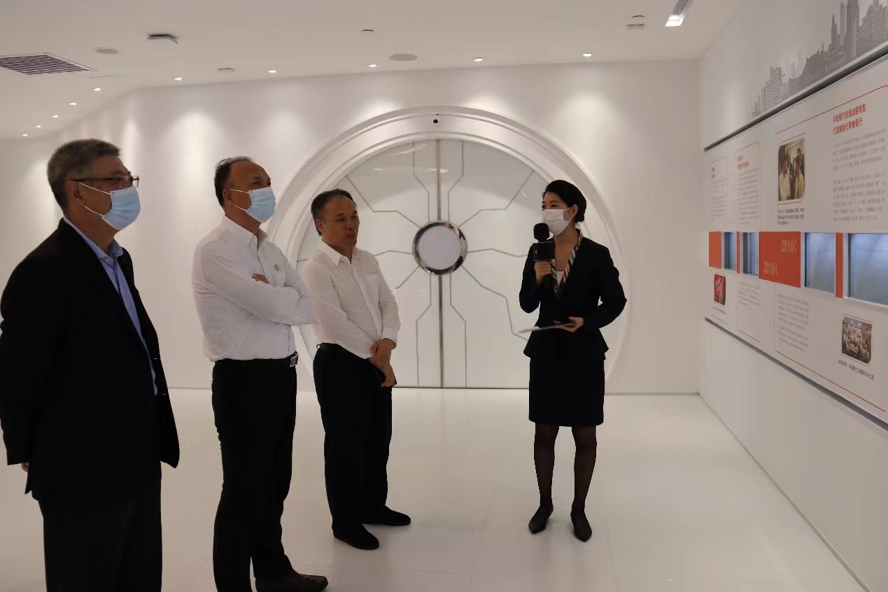朱迪儉書記首先來到了平安銀行智慧展廳,在行長助理孫芳滔的陪同下聽取了關于平安銀行發展歷程、主營業務及各項發展情況的講解。