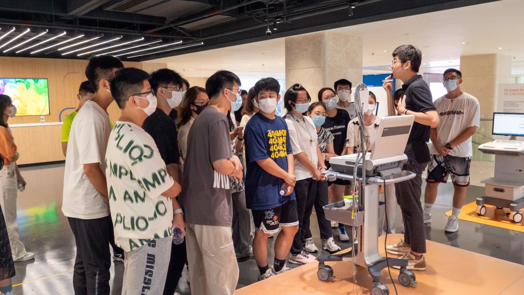 師生一行首先走進(jìn)理邦園區(qū)的公司展廳,認(rèn)真傾聽(tīng)公司講解老師介紹明星產(chǎn)品的功能及創(chuàng)新之處。教學(xué)期間,同學(xué)們踴躍發(fā)言提問(wèn)并與講解老師積極互動(dòng),展現(xiàn)了深北莫學(xué)子強(qiáng)烈的好奇心和求知欲。接著,老師和同學(xué)們身著防護(hù)服進(jìn)入研發(fā)車(chē)間,深入了解高科技醫(yī)療產(chǎn)品從零到一創(chuàng)造的全流程。第一次近距離接觸核心流水線,同學(xué)們的神色中有著掩蓋不住的激動(dòng),“穿上專(zhuān)業(yè)的防護(hù)服來(lái)到產(chǎn)研核心區(qū),才切身體會(huì)到中國(guó)醫(yī)療科技行業(yè)和國(guó)際供應(yīng)鏈體系的高速發(fā)展。”曾蕙同學(xué)說(shuō)道。在立體化倉(cāng)儲(chǔ)區(qū),大家進(jìn)一步體驗(yàn)了“研發(fā)-生產(chǎn)-銷(xiāo)售”一體化的國(guó)際化供應(yīng)鏈模式。在辦公區(qū)和休閑區(qū),理邦特有的公司文化和工區(qū)設(shè)計(jì)深深吸引了各位同學(xué),優(yōu)越的辦公環(huán)境激發(fā)了同學(xué)們對(duì)于未來(lái)的實(shí)習(xí)工作無(wú)限的遐想和期待。