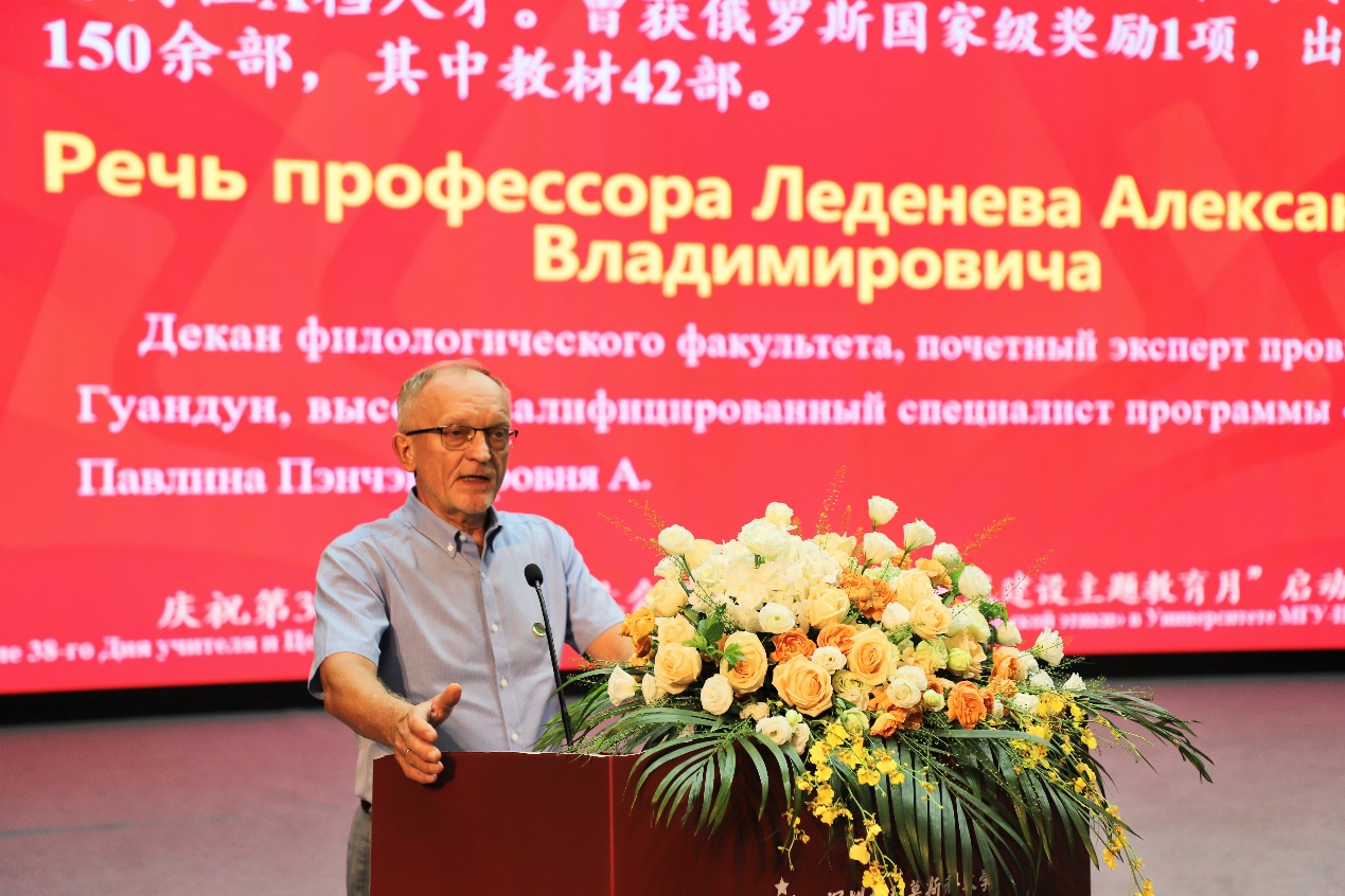 語言系列杰涅夫·亞歷山大教授作為俄方資深教師代表發言。他談到,無論在中國還是在俄羅斯,教師都是最受人尊敬的職業之一。他認為,要成為一名好老師,不僅要愛你所教的東西,而且要愛你所教的人,因為“一個人總是只向他所愛的人學習”。